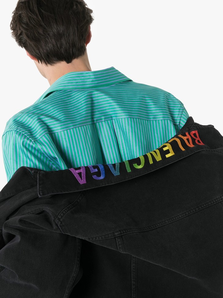 彩虹刺绣在黑色牛仔外套上显得超级亮眼