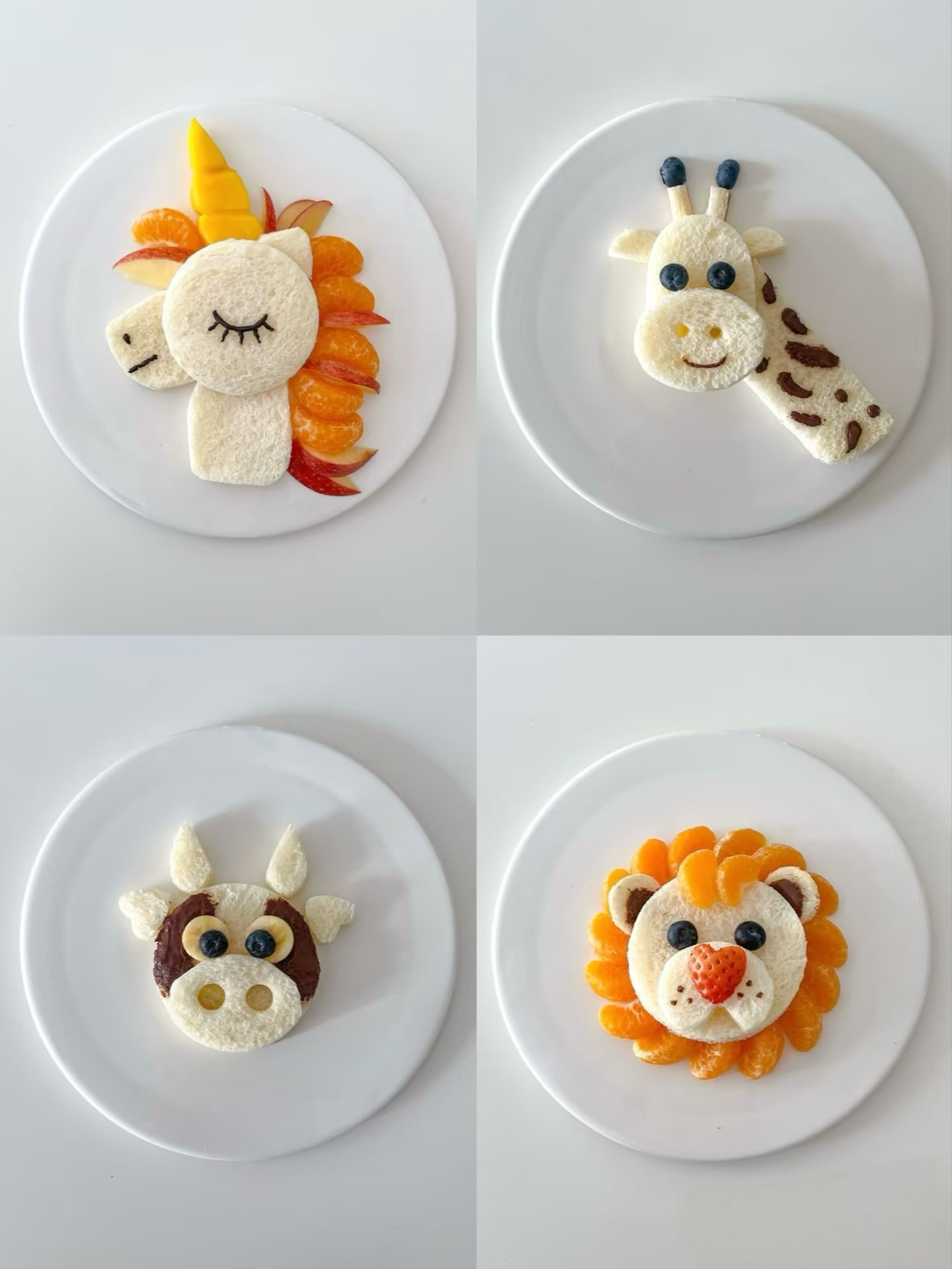 今天就手把手教你4款可爱到爆的卡通吐司摆盘:小马🐎长颈鹿🦒奶牛🐮狮子🦁️,专治各种吃饭不乖的小神兽!
