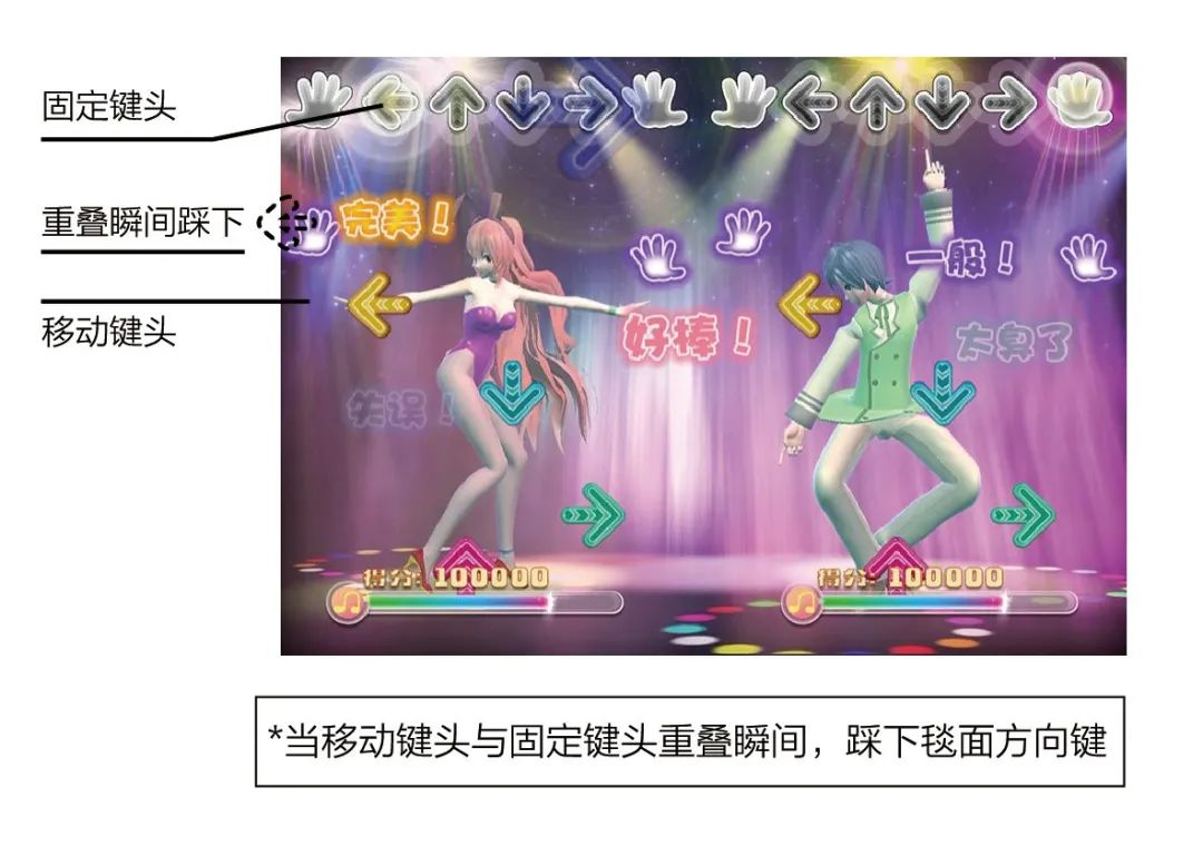 答:当舞步箭头出现时,可能过早或者过晚的踩踏,产生踩踏不准的错觉,多加练习即可。跳舞开始时,屏幕下方会出现不同方向的“移动箭头”向上升起,当与屏幕顶部“固定箭头”重合的瞬间,踩踏跳舞毯对应的方向键。