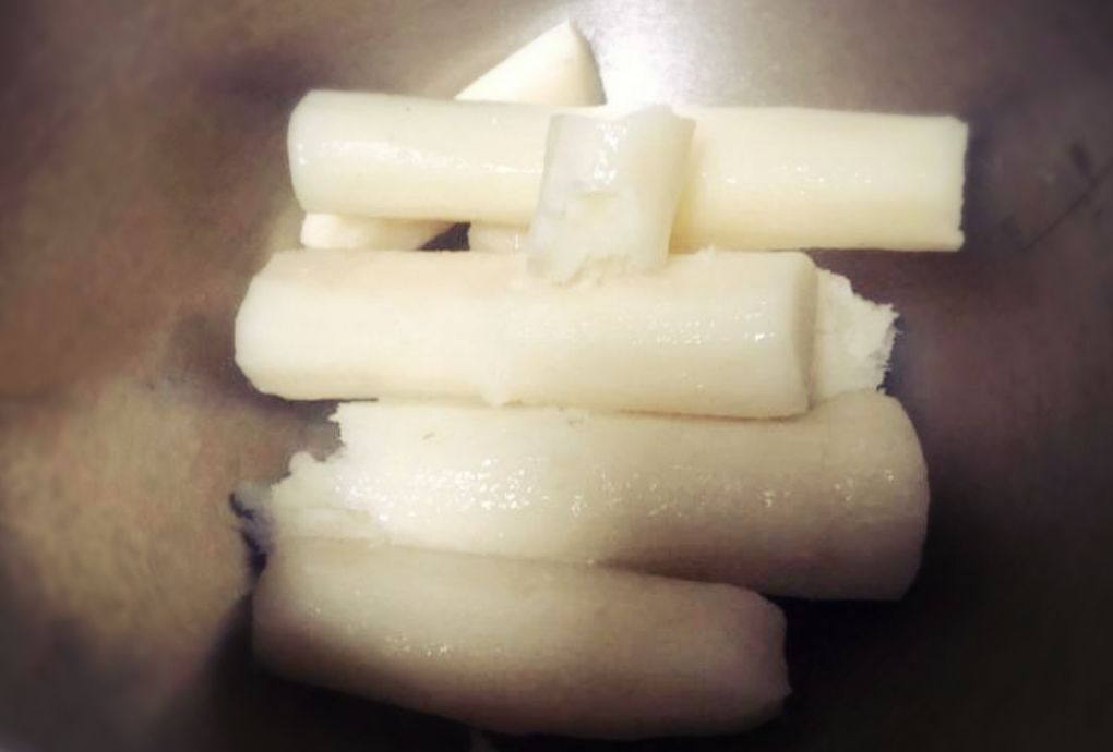 1、将山药去皮后入锅蒸制20分钟,20分钟后取出备用;
