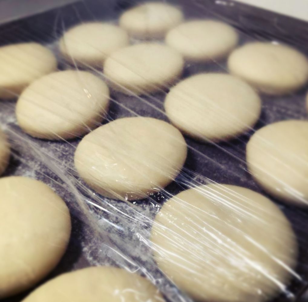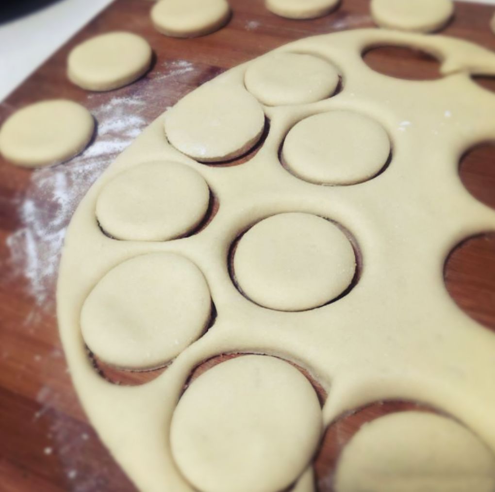 2、找个罐头瓶或者用饮料瓶拦腰剪开当做模具,把面皮压成小饼;