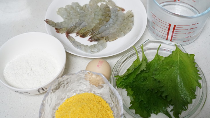 大虾、鸡蛋、天妇罗粉或低筋面粉、冰水、面包糠、番茄酱