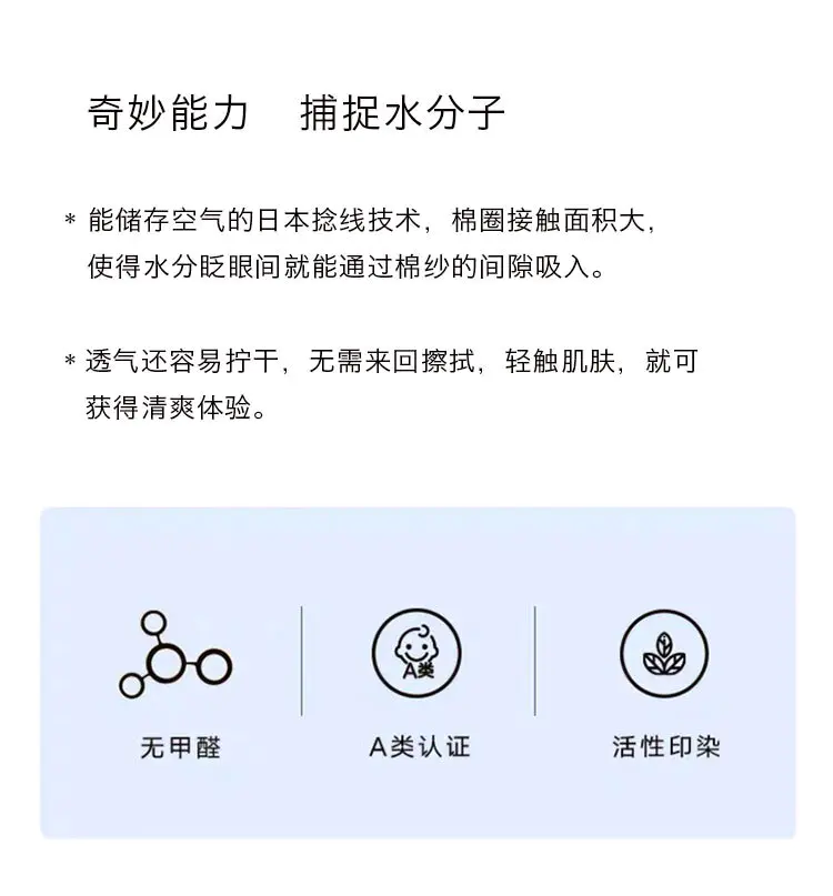 高颜值、柔软,无捻纱工艺使毛巾轻盈松软、触感软糯细腻。