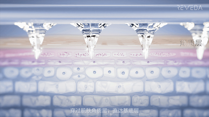 REVEDA悦肤达自主研发的微针成型技术AVMS峰矢点阵微成型技术,也是处于国内领先水平。对比市面上其他微晶技术也更均一,更整齐,自然吸收率更好。而小痘钉,便是让玻尿酸微晶净痘清颜系列痘贴,搭乘微晶专利黑科技(专利号:202021114454.9),将祛痘功效成分转化成固态微晶,针对痘痘部位,突破护肤“屏障”限制,将活性成分精准送达肌肤深层,从而达到高效快速消灭痘痘的效果。小痘钉的革新科技无创微晶精华,根据人体角质层厚度,专研UM230微晶深度,正好可以穿过角质层,将精华成分直接输送到肌底,并渗透进入真皮层,相比于传统的涂抹式精华,可以突破9倍的吸收率。而且使用相当安全,每一根都只有1/10的发丝这么细,针尾只有1/4的睫毛般粗细,而230UM的针长,正好远离皮下风险区域,使用完以后只需要1小时,就可以恢复到无创的状态。
