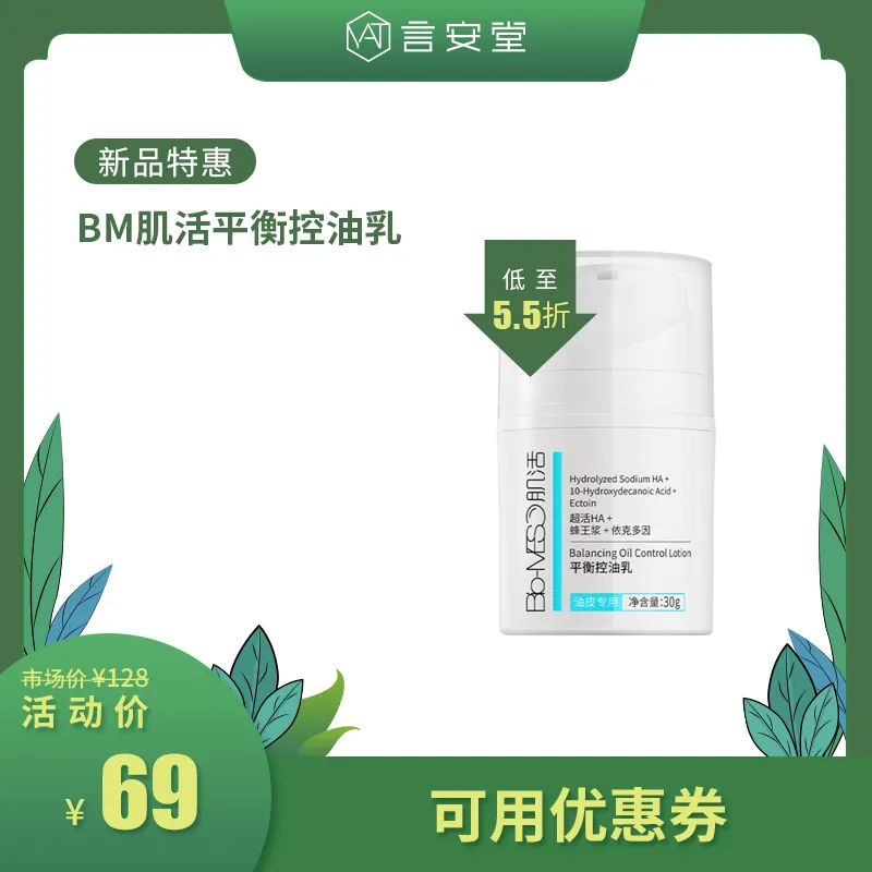 就很容易出现外油内干、以及敏感等问题,因此针对油皮,除了减少表皮油脂外,也需要增强屏障功能,舒缓抚火火,保持皮肤健康强韧。这三点都做到了,才是一款合格的控油产品。如果你总是觉得控油产品用多了脸干,不用又可以炒菜,常常觉得外油内干,那这瓶肌活平衡控油乳正是你需要的。可以说是舒缓维稳的优秀学员了,亚麻籽提取物的α-亚油酸可以起到舒缓维稳、保护皮肤屏障的作用,主要原因在于它可促进皮肤天然抗菌肽的生成,构建健康的皮肤生态环境,帮助皮肤增加自身抗菌肽的生成,更好的抵御外部侵扰蜂王浆(Acnacidol™ BG)是一种具有油脂调控和舒缓作用的专利活性物,可以在短期内减少皮脂分泌,抑制粉刺等问题。耳熟能详的网红成分,人家从两年前红到现在,不是没有道理的。不仅可以提供良好的锁水效果,对肌肤更是有着强大的修护能力,并且对皮肤细胞有很好的保护作用,可以防止紫外线带来的伤害四种分子量的透明质酸的添加,大分子可以锁水保水,强化皮肤屏障,小分子可以修护受损细胞,深层保湿,同时还具有抗氧化的作用积雪草提取物的舒缓维稳能力,自然不用多说,绣线菊提取物是一种5-α还原酶抑制剂,对皮肤有着收敛、控油的作用,同时也有着抑制痤疮生成的功效。黄檗树皮提取物对多种细菌都有着较强的抑制作用,除了可以舒缓维稳,还可以促进胶原合成,清除自由基。调节油脂分泌、强韧肌肤屏障、舒缓维稳、改善皮肤微生态,同时还可以防止紫外线带来的伤害,可以说一个油皮的种种需求,全在配方师的设计量程之内。品牌对产品也是很认真负责的做了消费者评测,首先对于产品的肤感,几乎是得到了一致的好评(以下数据来自华熙生物功效测评中心)。而在控油的同时,完全没有削弱肌肤的保湿能力,测试者的皮肤水分含量不降反升。·价格:官方价50g装/209元,今天上新低至5.5折,30g装仅69元,领专区券到手价更低哦~夏季纵然有万般好,但对于那些容易长痘痘的人而言,终究是个讨人厌的季节,尤其是那些红肿的大痘痘。