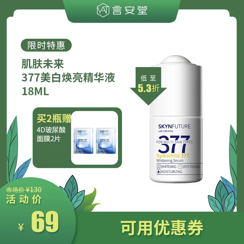 ·价格:市场价298元,堂里上新低至3.8折,活动价仅需139元,再送价值63元ROC A醇面部抗老精华10ml!专场领200减20元优惠券,凑单买2件更划算哦!讲完抗老,夏日避不开的话题——美白。来上款超有料+超高性价比的产品,从一上架就被抢爆,每次活动都超级火爆,不停被催返场,就是这款肌肤未来377精华!
