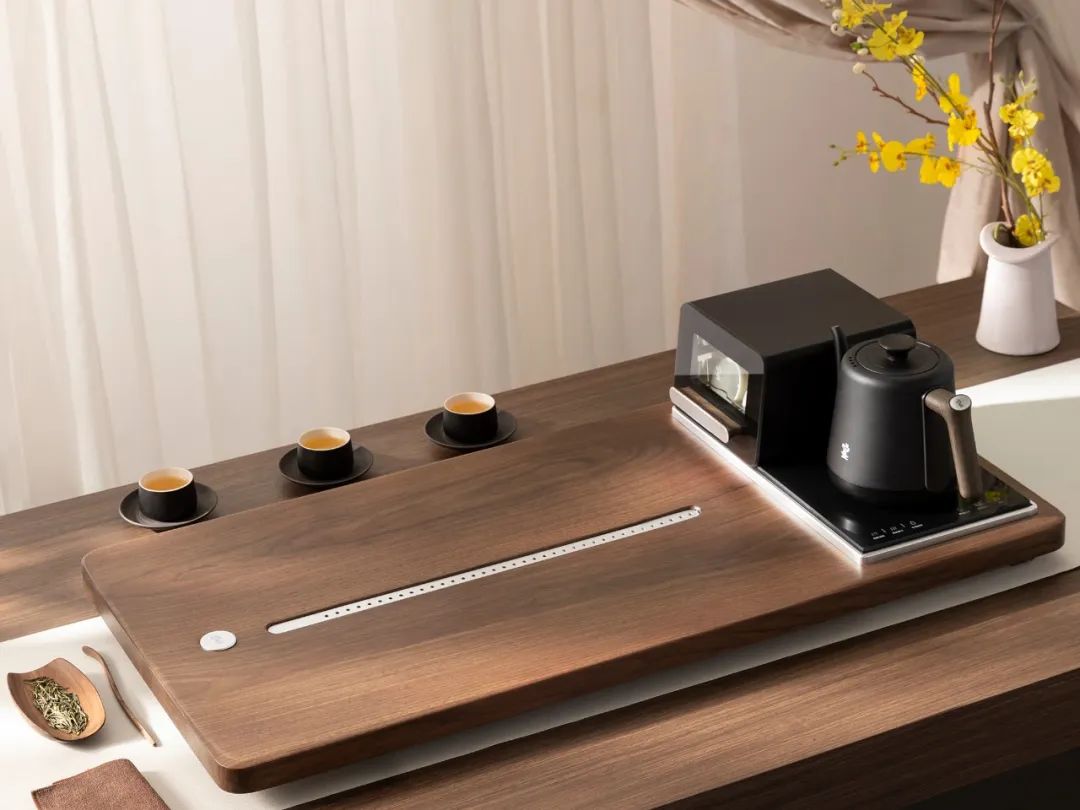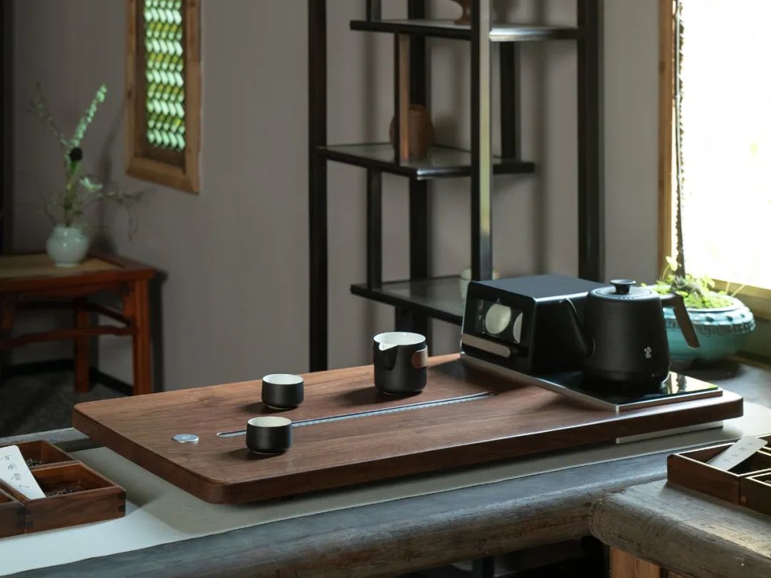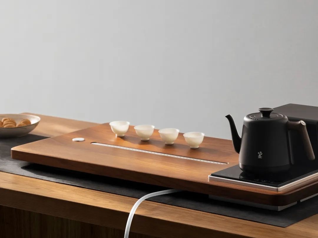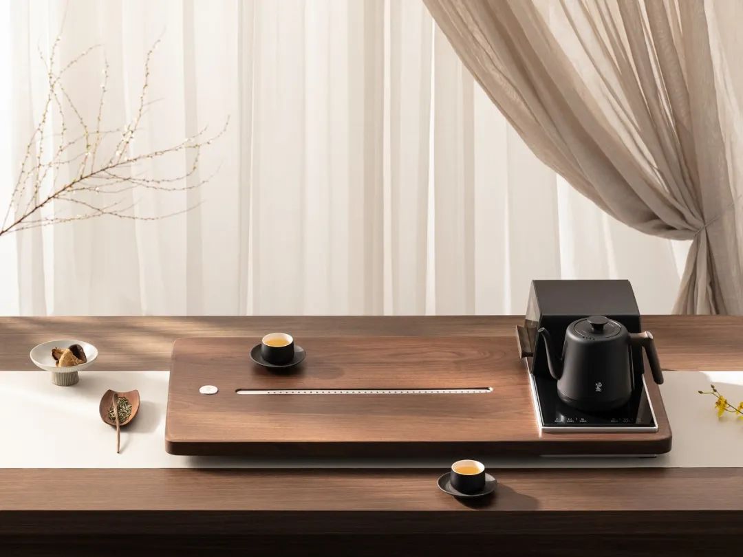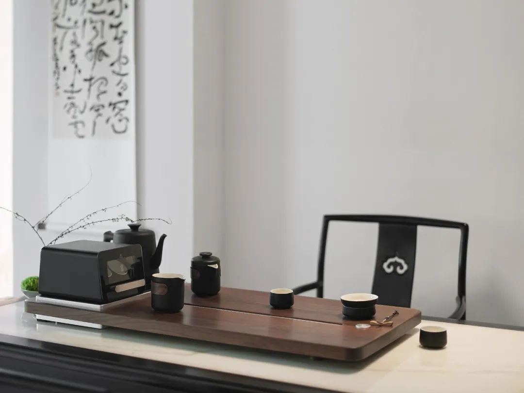 让茶盘不再是单调的平面,能减轻厚重感、避免空间拥堵。