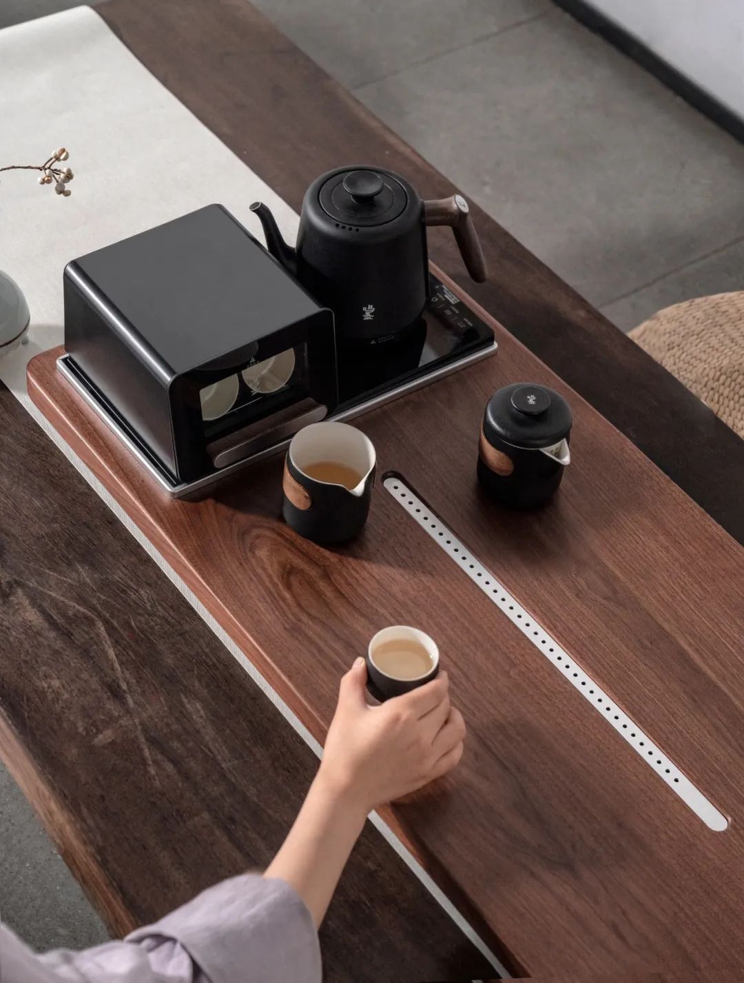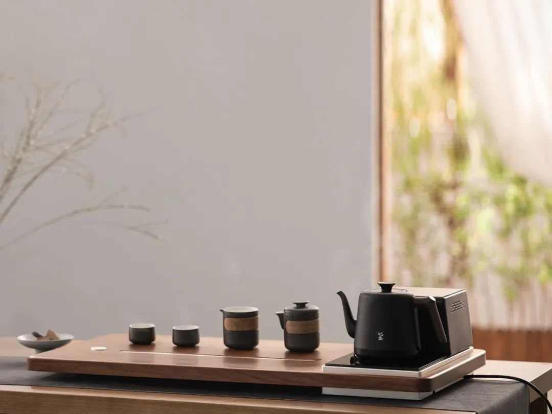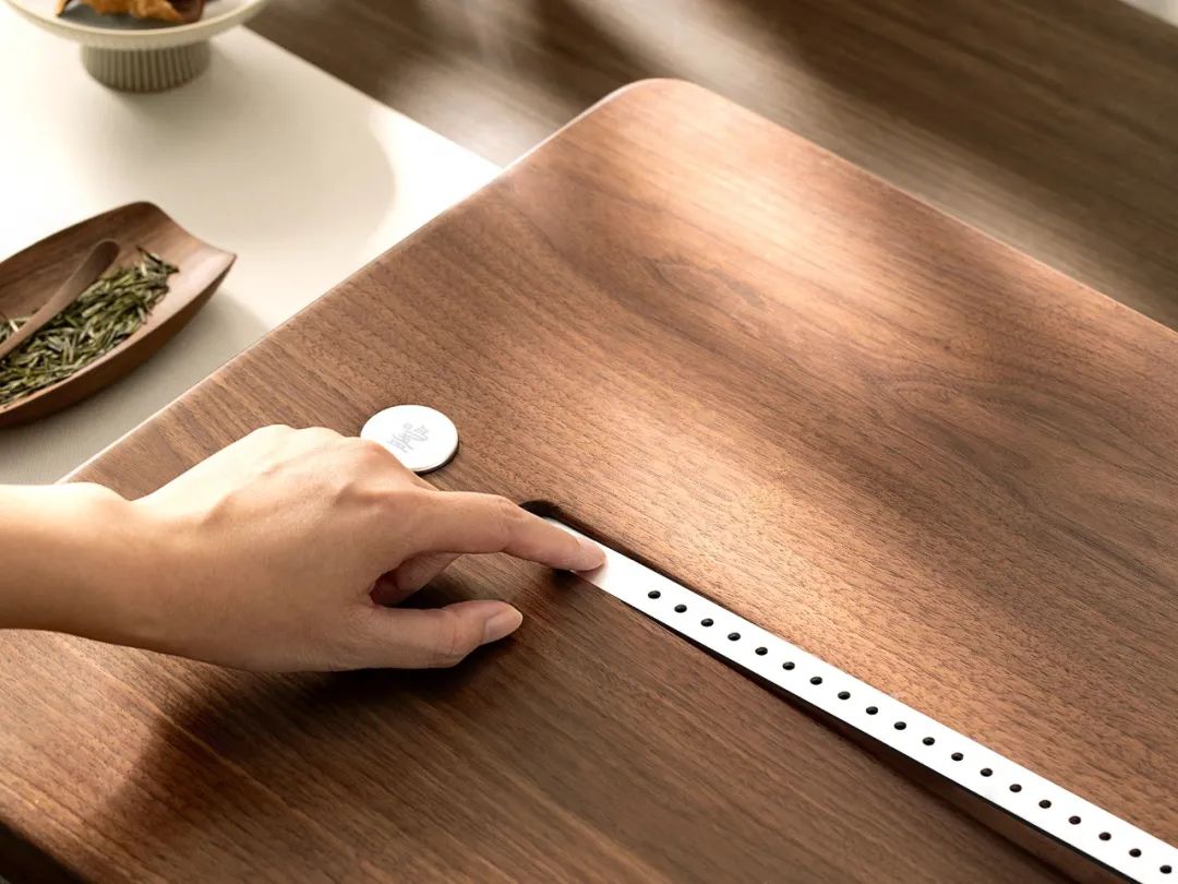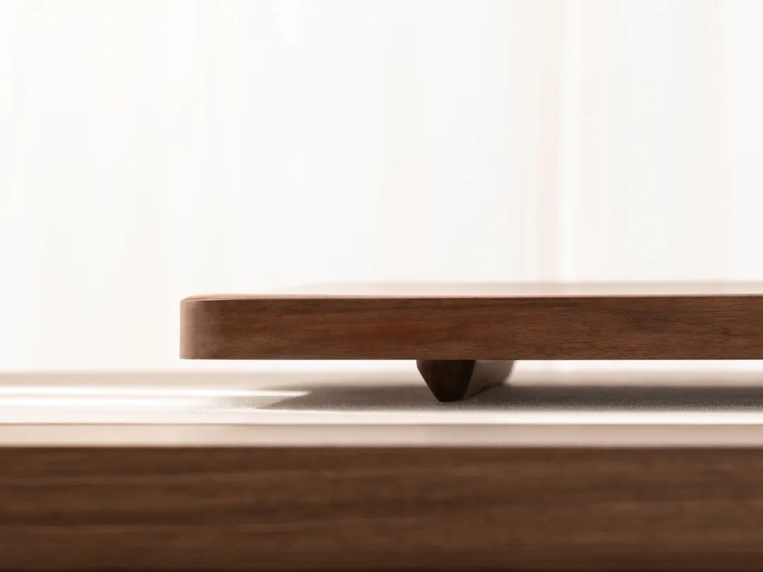让茶盘不再是单调的平面,能减轻厚重感、避免空间拥堵。