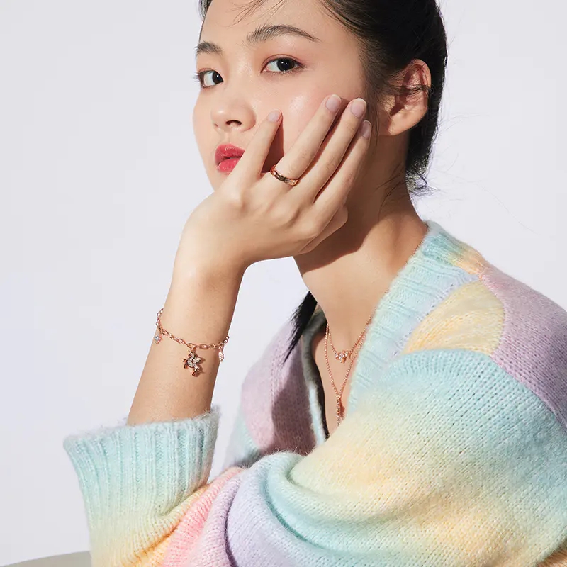 兴起于18世纪欧洲的蝴蝶结,可爱魅力延续至今,将锆石线条化为灵动丝结,在交织心动中藏进一份闪光惊喜,打造时髦格调与梦幻甜美兼具的浪漫气质!