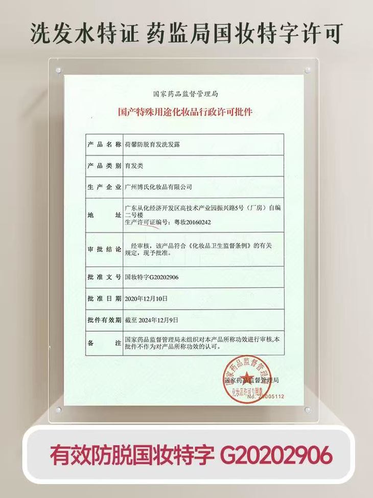 同时我不仅仅是一个普通的防脱洗发水,我是经过药监认证的。