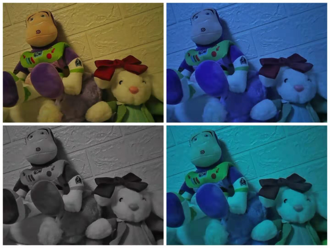 滤镜有黑白、蓝调、绿调以及微黄复古调四种:
