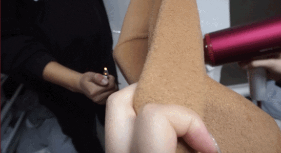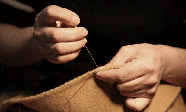 整个个过程需要手工密度高针缝合,走线需要细密精准还要高度贴合,表面不能有明显的针线痕迹。