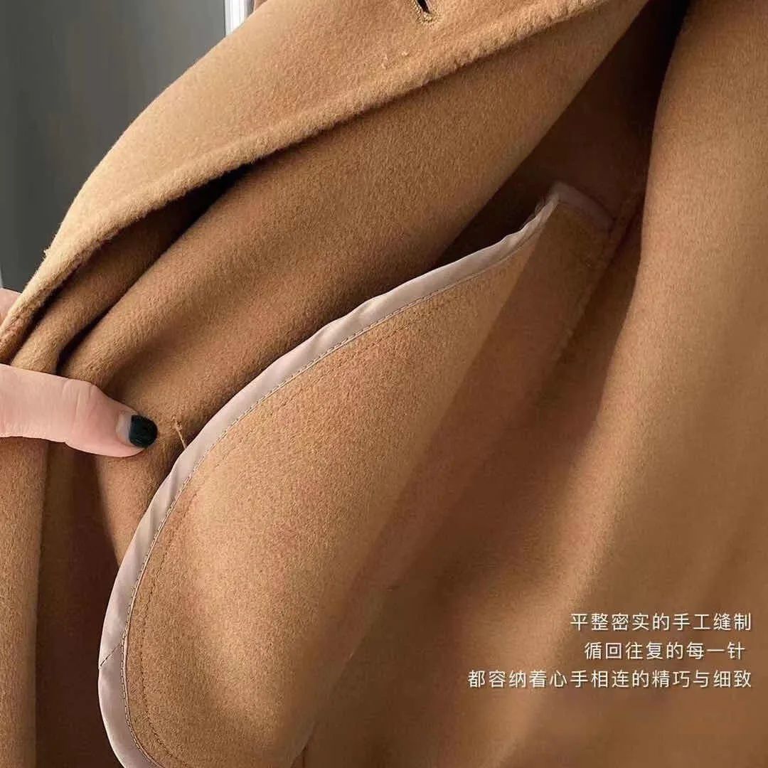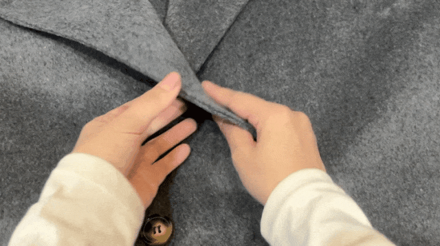 双面羊毛面料+纯手工缝纫设计,大衣的缝合处处处都透露着高级感。