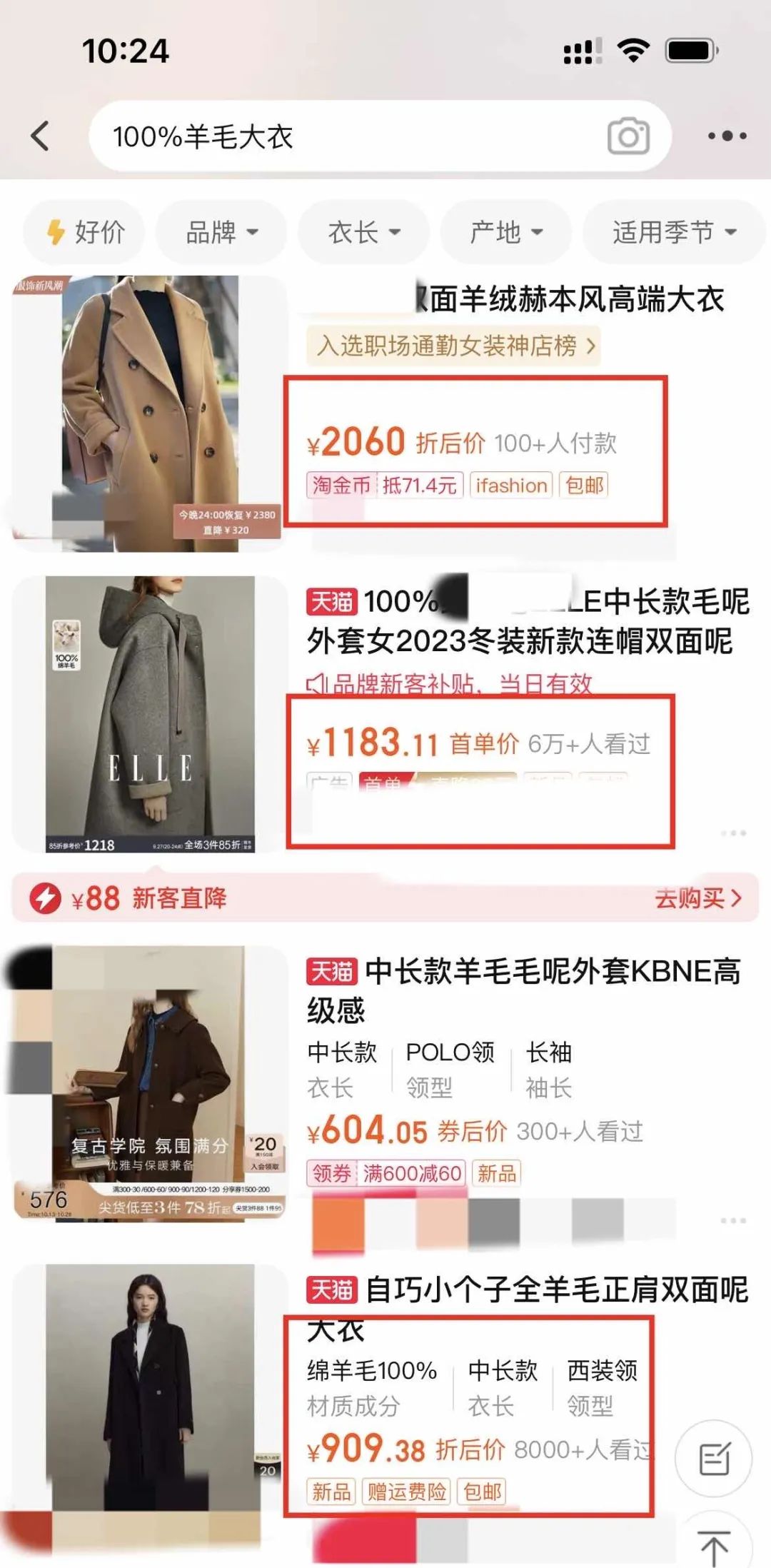 实体店、某宝要花上千元才能买到的纯绵羊毛大衣。