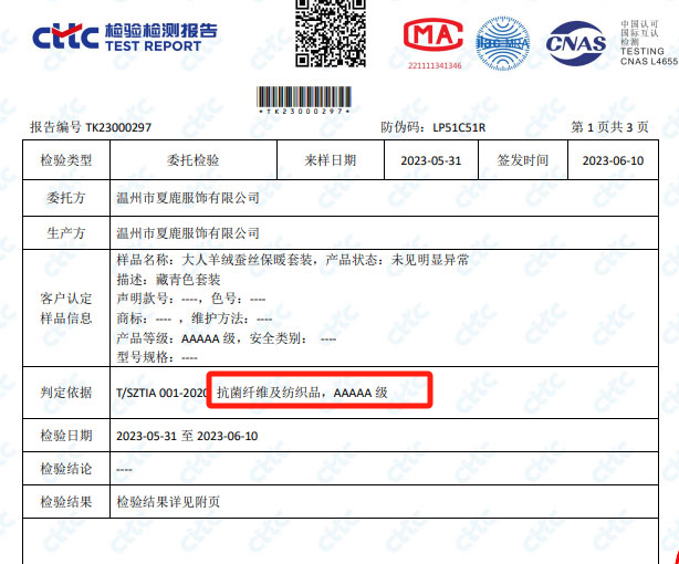 直接摆出检测报告,面料实实在在含有5A级yin菌