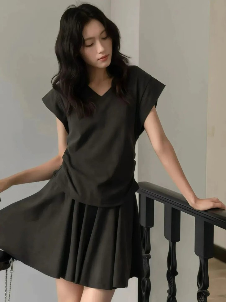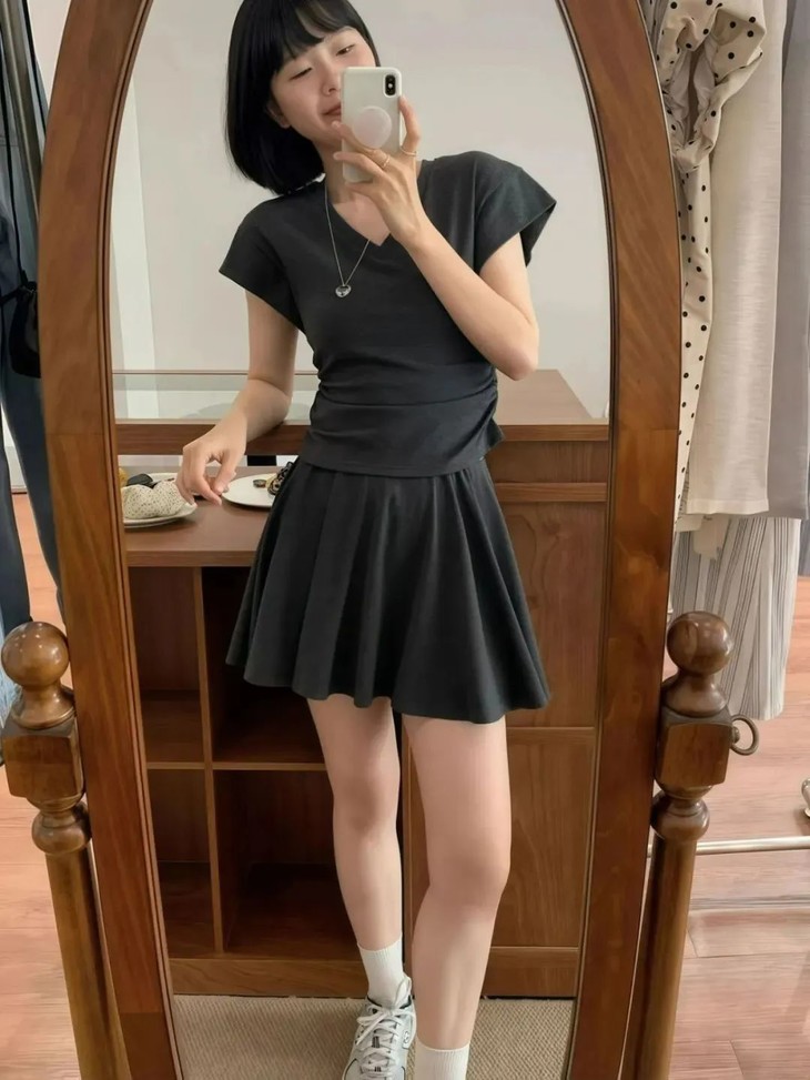 抽绳上衣+A裙 腿长又显瘦