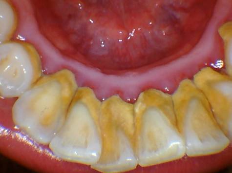 牙石是由菌斑矿化后形成,牙石表面仍存一层尚未矿化的菌斑、脱落的上皮细胞、白细胞、食物碎屑等。牙石呈黄白色,可因饮茶、吸烟使颜色变深。它易存积在不易刷到的牙面上;或以唾液腺开口附近的牙面上沉积最多,此外牙石还易沉积在失去咀嚼功能的牙面上。牙石又分龈上结石和龈下结石。牙石刺激牙龈组织产生炎症,是牙周病的病因之一。牙石比较硬,与牙齿附着很紧,一般刷牙是不好刷掉,应到口腔科进行洁治。