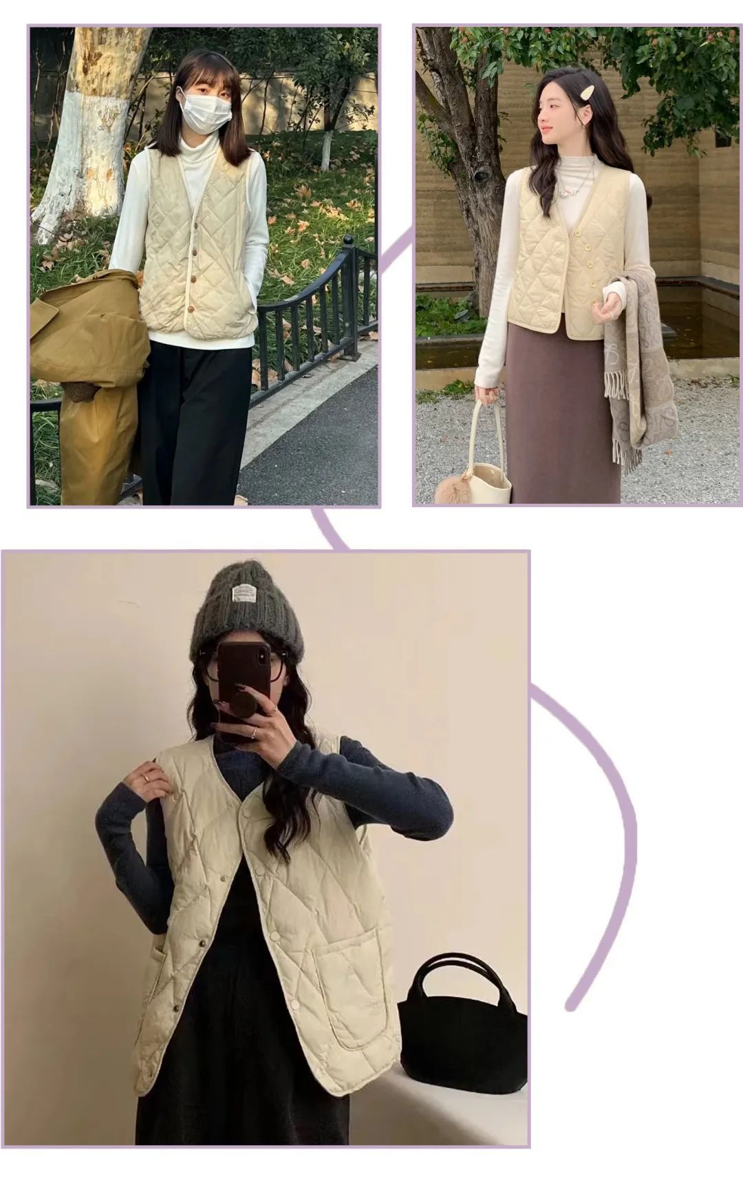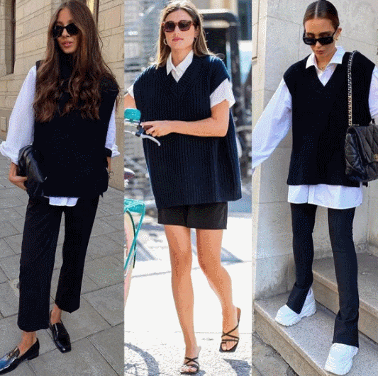早春早秋可以选马甲+针织衫/衬衫/T恤的搭配方式✅