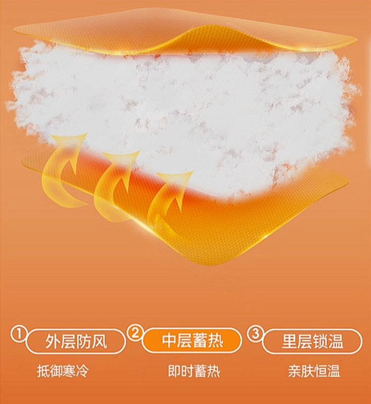 除此之外,衣服内层也有一个令人惊讶的小惊喜—紫外线光感设计,有着吸收紫外线转化为热能的功能,保暖效果更佳。
