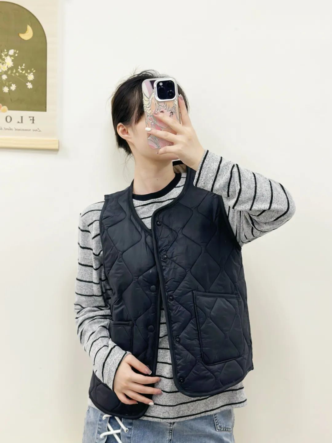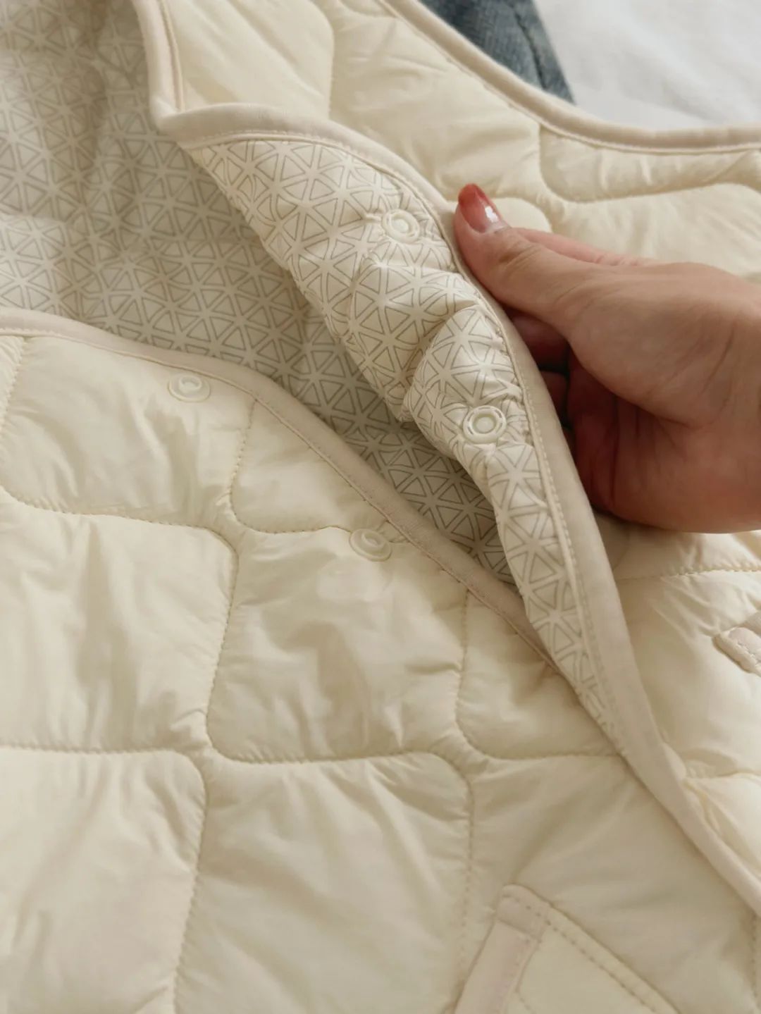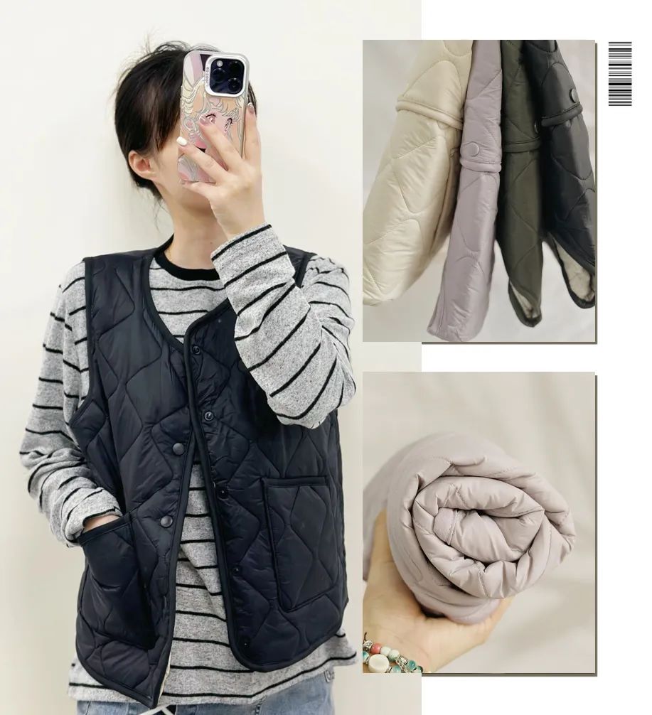 得益于面料的优越性,它也不会像针织类马甲一样易产生静电,按扣的设计穿脱也方便。