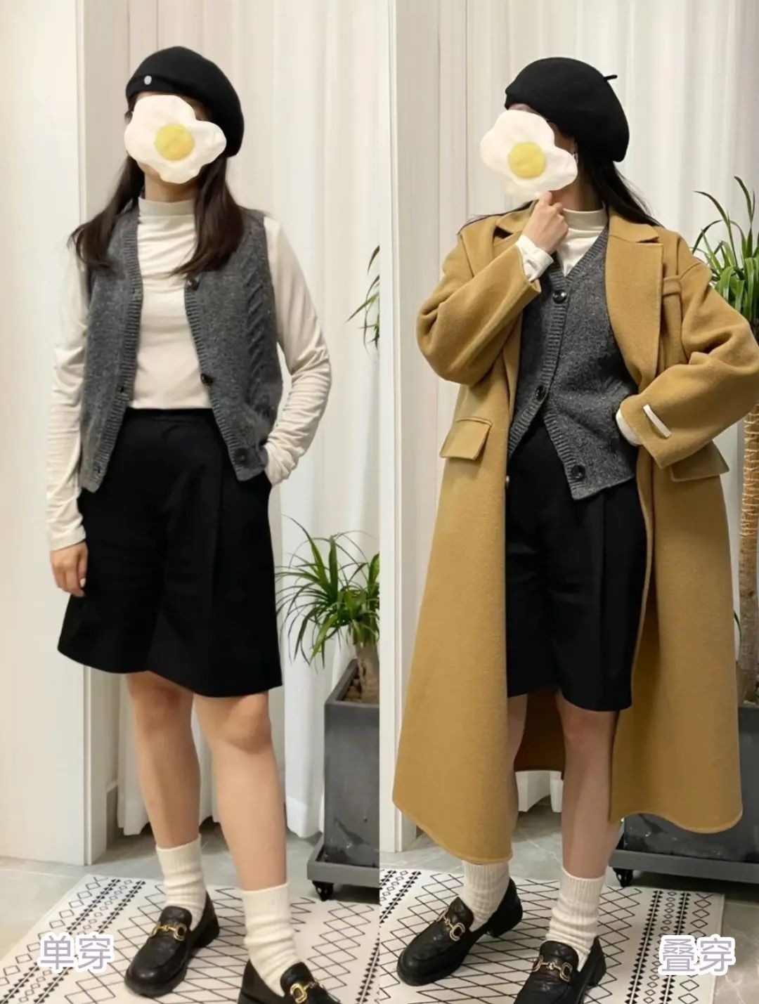 天冷之后就选择叠穿在外套里面,比如✅马甲+大衣