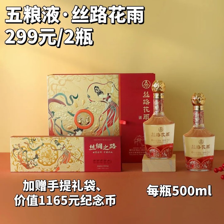 但如果你正好需要一款好酒,还很喜欢五粮液的醇香,可以试试这款五粮液·丝路花雨。