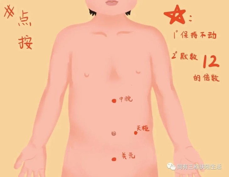 具体可以按照揉腹、推腹、点按三个步骤来操作: