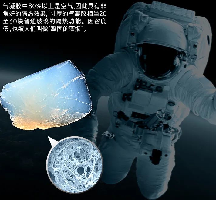 在国际空间站处背阴面时,温度会跌倒-157℃,宇航员就是靠着气凝胶做成的宇航服保暖的。