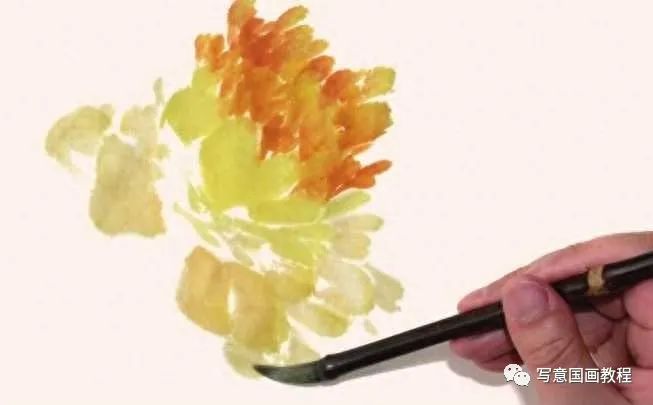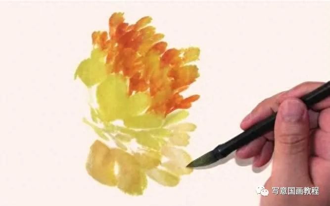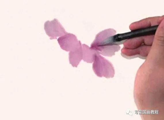 2 用毛笔侧锋先画出外侧的花瓣,要点缀得有大有小。
