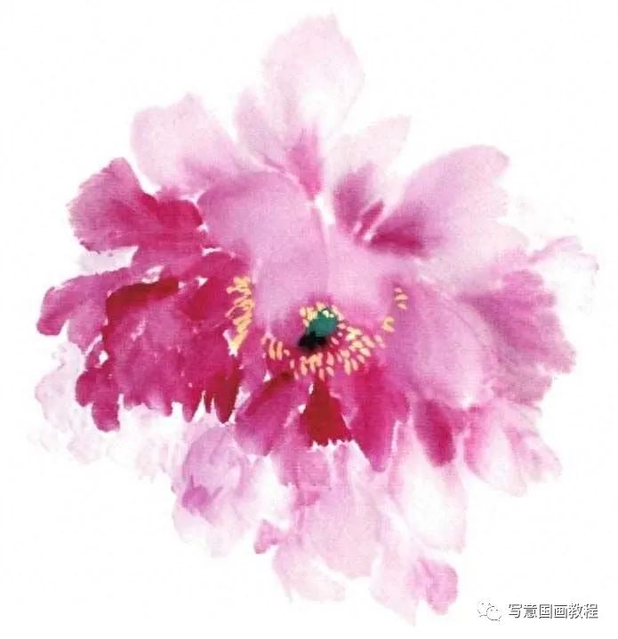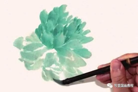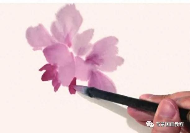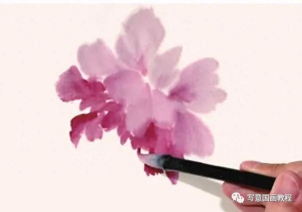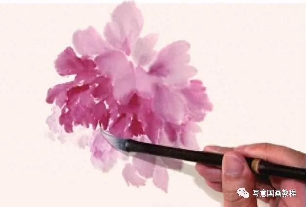 5 用毛笔顺锋加逆锋的方式画出靠后的花瓣,以3~4层为宜。