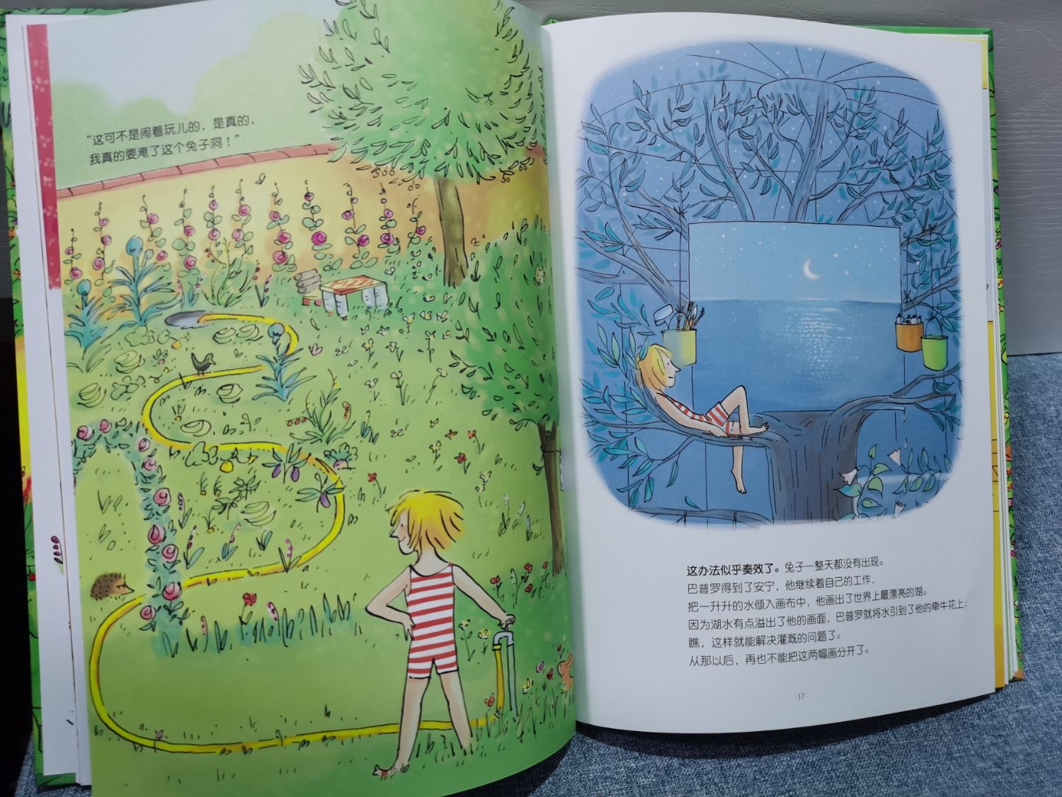 这是我读过最具创意的绘本了,让我有一种脑洞大开的感觉,作者的创作技巧就像小兔子和鼹鼠创作的灌溉系统一样巧夺天工。