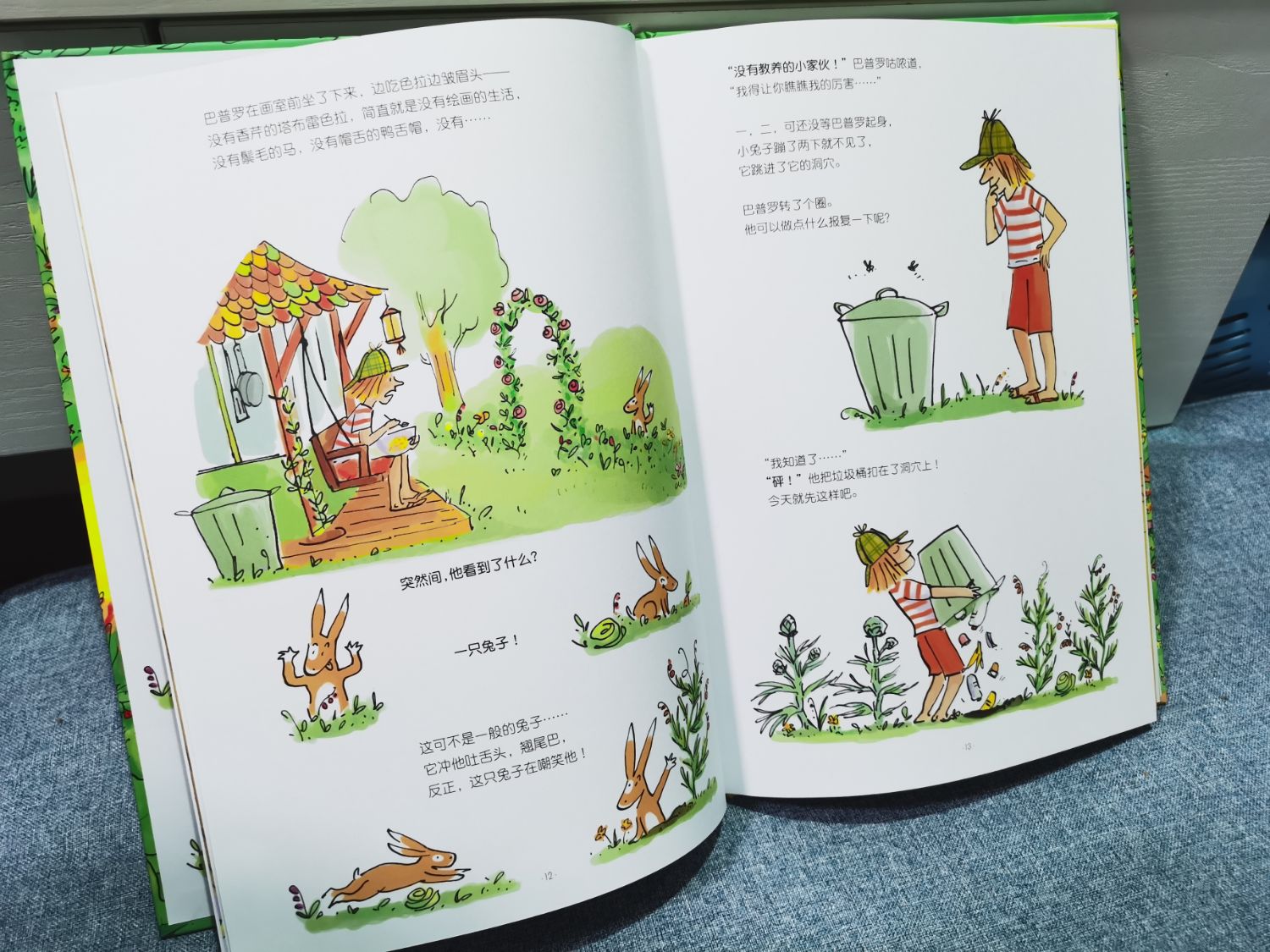 正着读是小画家的故事,他在花园里遇见一只可恶的兔子,于是想尽办法把这只兔子赶走。
