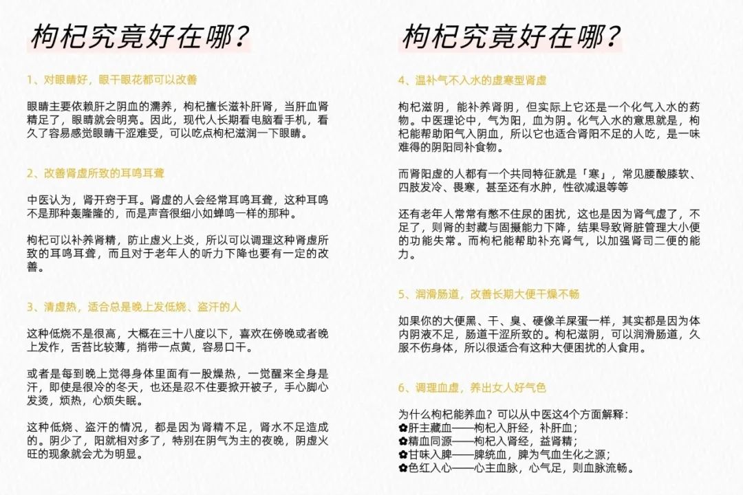 《神农本草经疏》中记载:“枸杞子,润而滋补,兼能退热,而专于BU肾、润肺、生津、益气,为肝肾真阴不足、劳乏内热补益之药”。