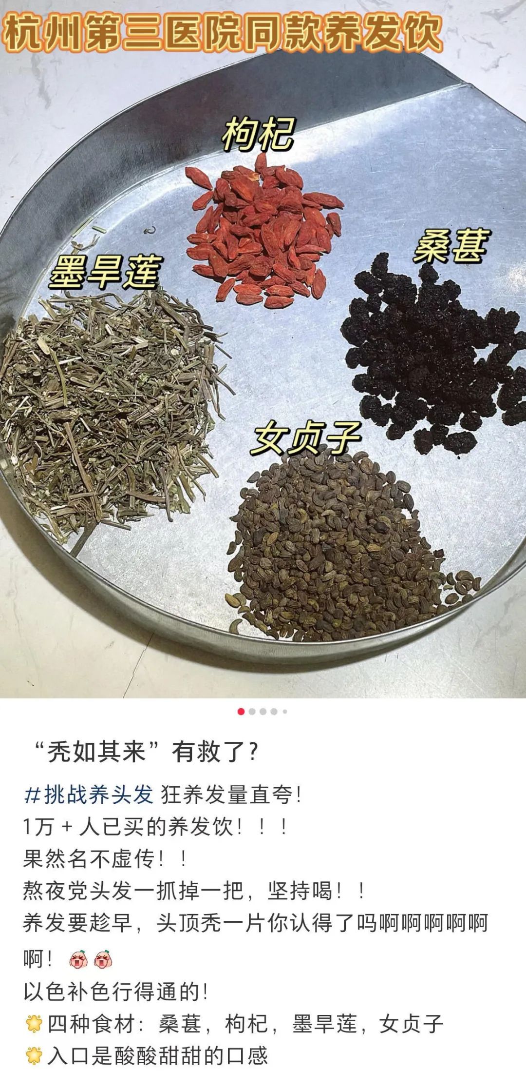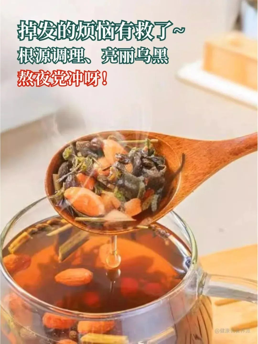 之前我熬夜脱发严重去看中医,老中医也给我推荐这个配方的茶饮,我现在天天就在办公室里喝这个。