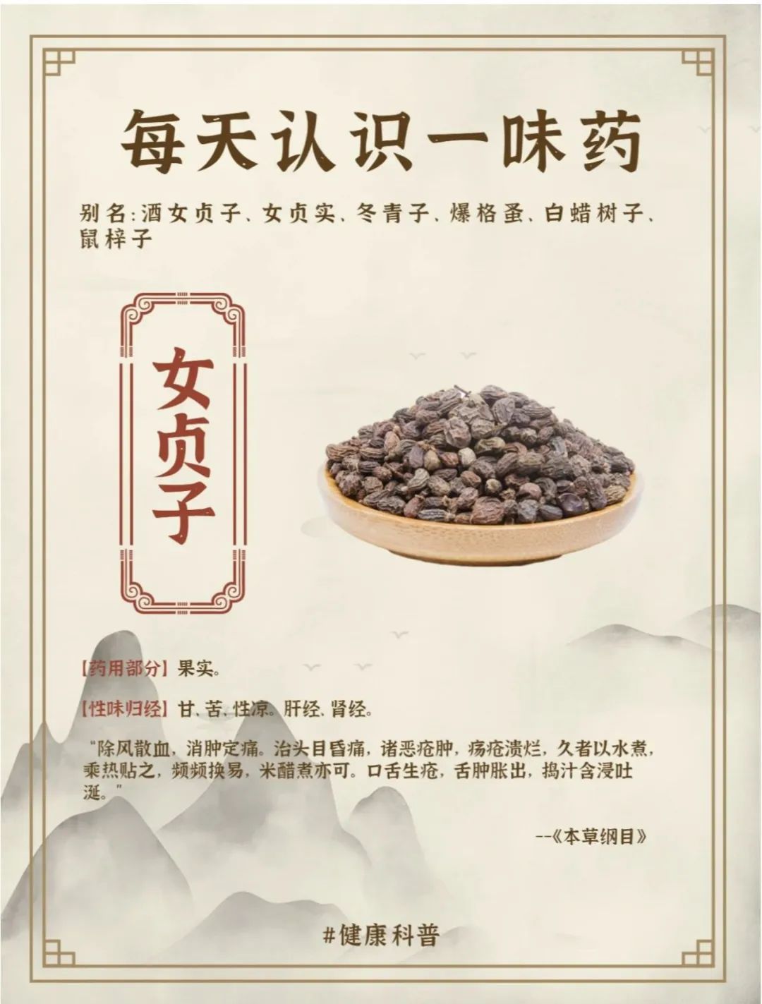 而“女贞子、墨旱莲”也是大名鼎鼎的中成药:二至丸的主要成分。
