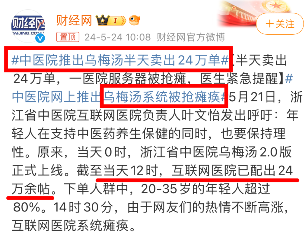 半天卖出24W单?!火爆全网的“乌梅饮”、“养发饮”少量现货,快抢!
