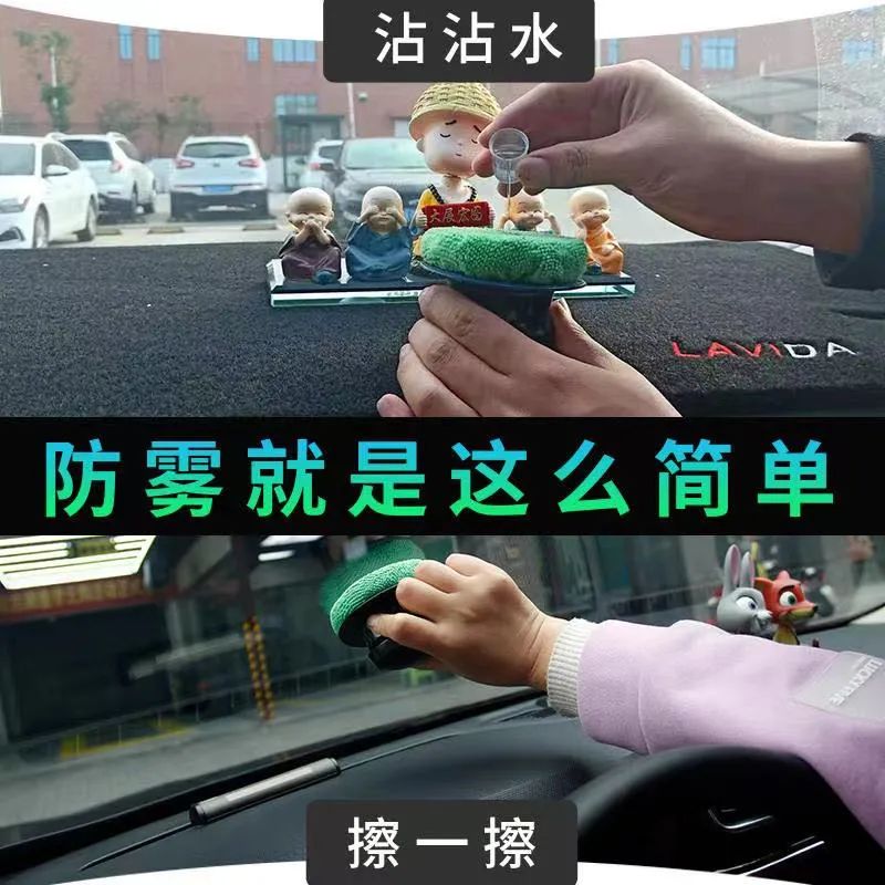 沾一点水在防雾剂上,然后涂抹在车窗内侧,停留几分钟后用抹布擦干。