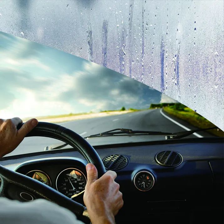 E路驰的防雾剂有这么好的效果,主要是因为它是水性防雾,会在玻璃表面形成透明的亲水层。