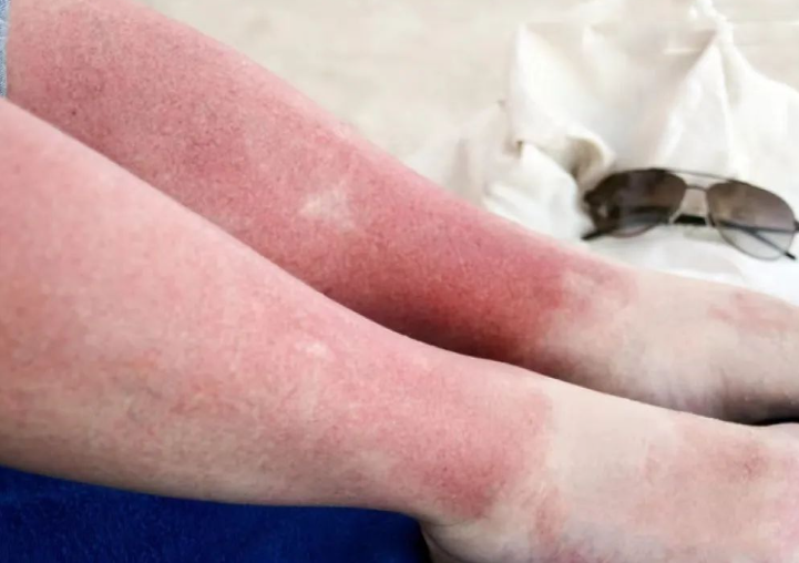 发现皮肤出现发红且伴随着局部发烫、刺痛感(严重时会红肿脱皮和水泡等现象),红斑部分与其他的部位有明显的分界线时,意味着皮肤已经晒伤损伤了。
