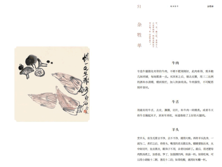袁枚对食物味道的理解极其考究,而《随园食单》时常跳出“甘鲜异常”“鲜嫩绝伦”“酥脆软美”等捕捉口感与味道的词汇,令人遐想。