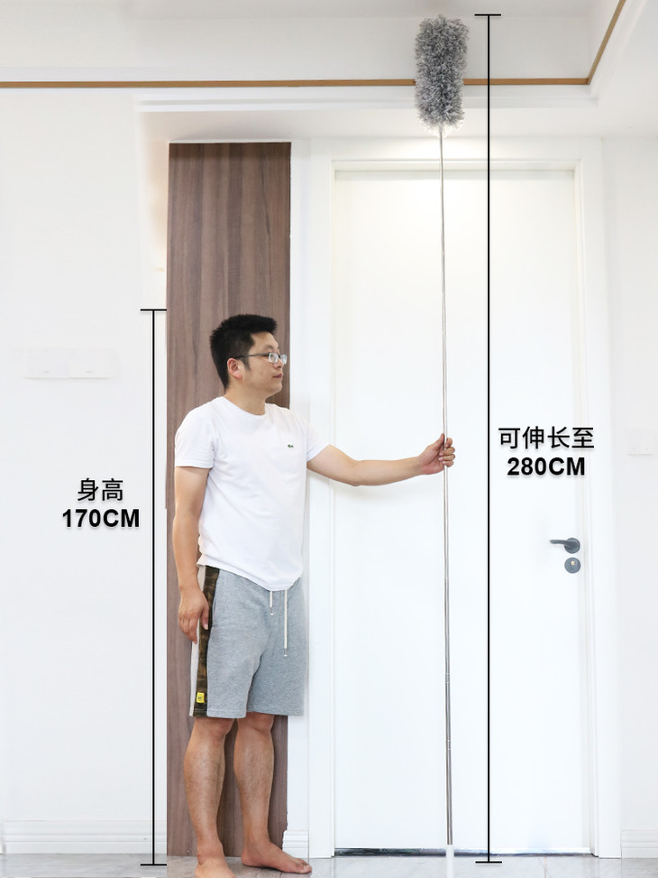 这个防尘掸子最大的优点是:杆子可拉伸至2.8米