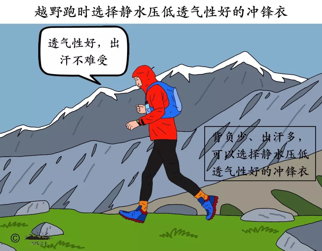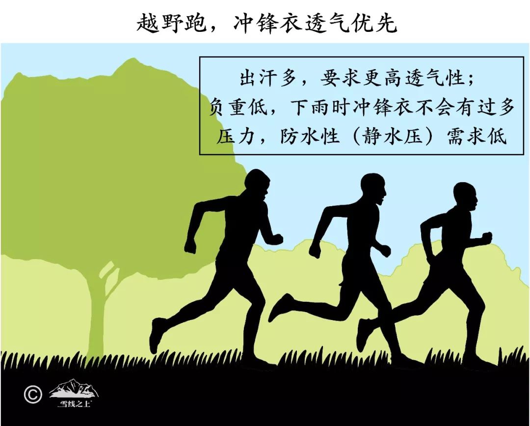 什么情况考虑高透气性——既然冲锋衣的透气性与防水性成反比,在一些排汗要求高、雨雪威胁小的户外活动,比如越野跑,你就需要倾向于高透气性的冲锋衣。