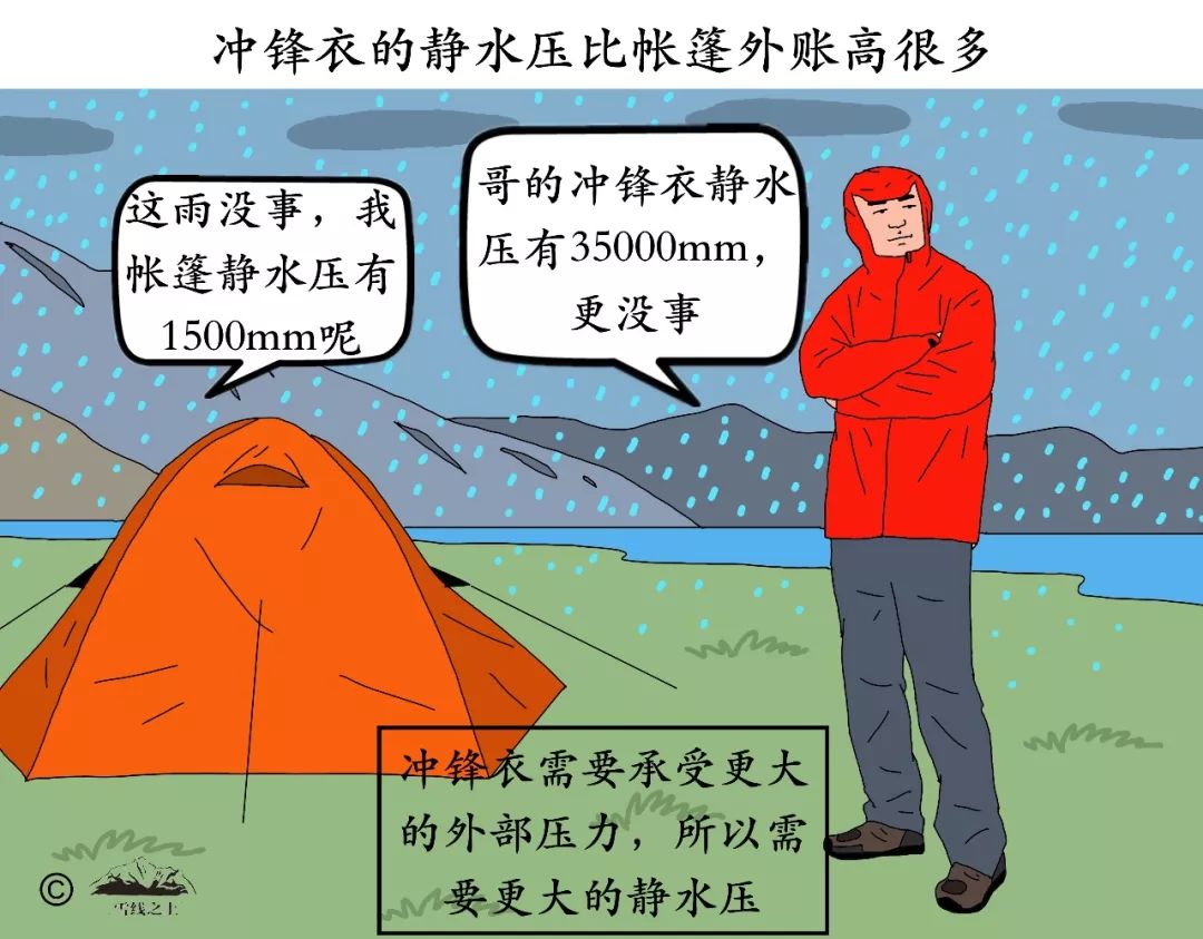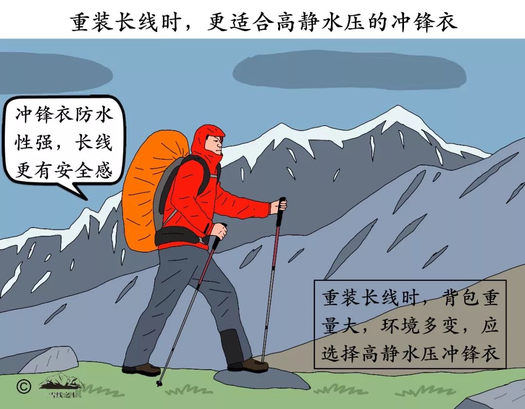 雨越大,冲锋衣需要的静水压越高——冲锋衣防水性能与雨势大小有关。