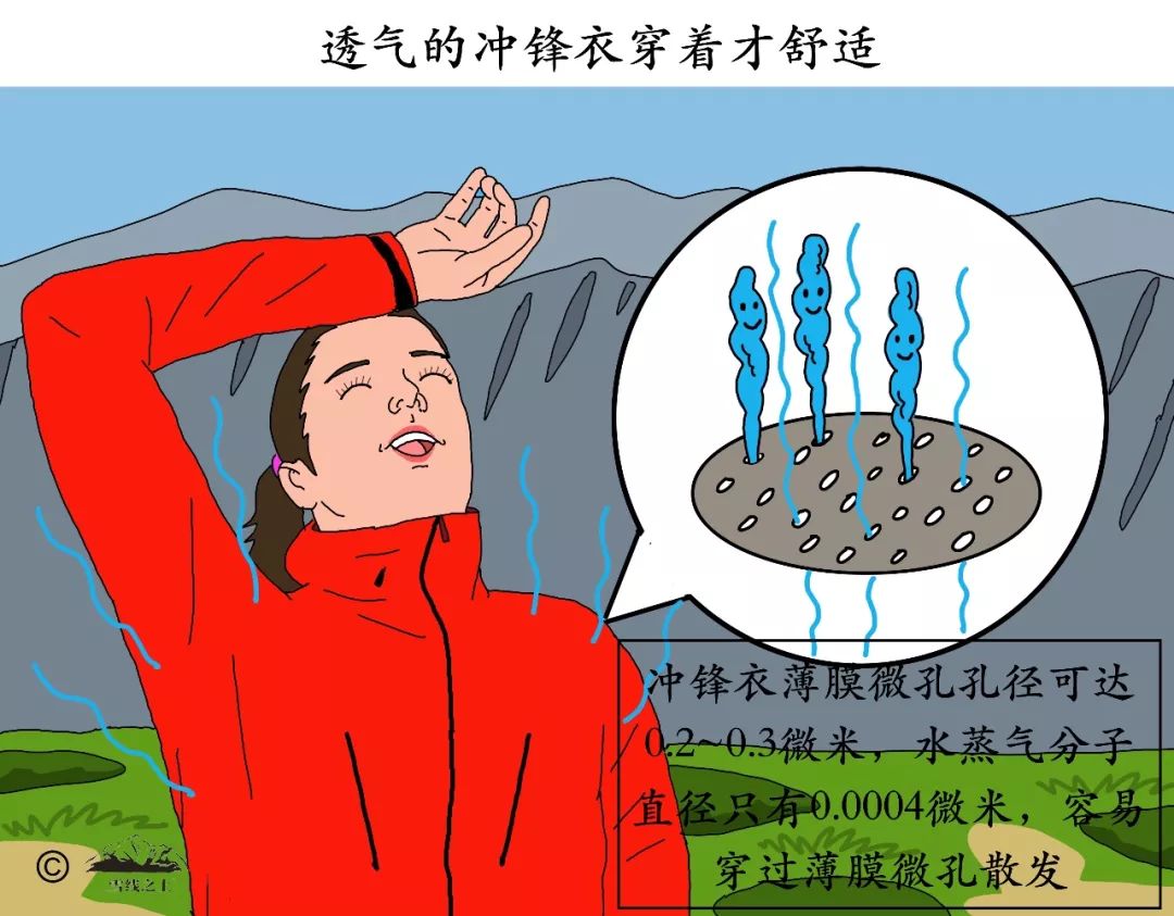 透气性关乎舒适度——人体散发的汗液以水蒸气形式通过冲锋衣传导到外界,从而避免汗液集聚冷凝在冲锋衣内,是冲锋衣舒适性的关键。