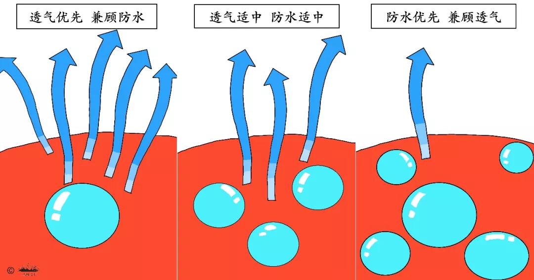 在厚此薄彼之间就造就了两者之间的矛盾:提高防水性,就需要让薄膜微孔更小、更密,就越不利于汗水蒸发排出。