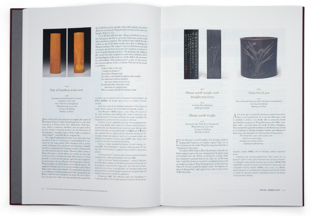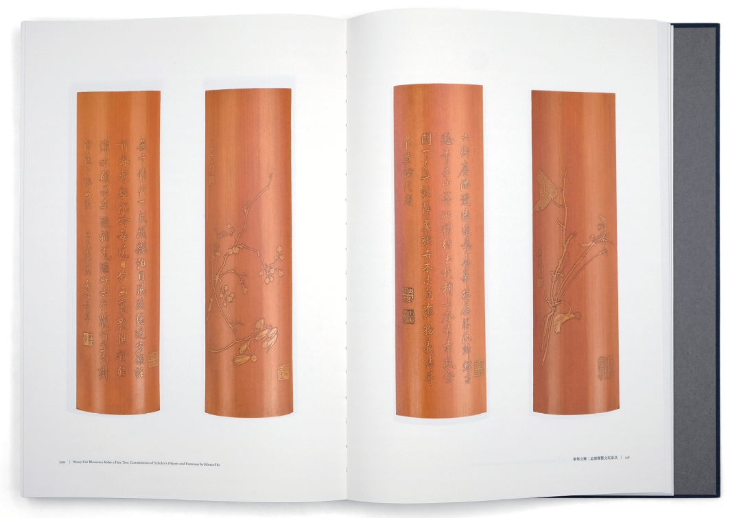 關於《華萼交輝》的開本,最初是按照與《留住一抹夕陽——周漢生竹刻藝術》相同開本來設計的,後來打印樣書不斷測試,最終改為尺寸更大的標規八開。