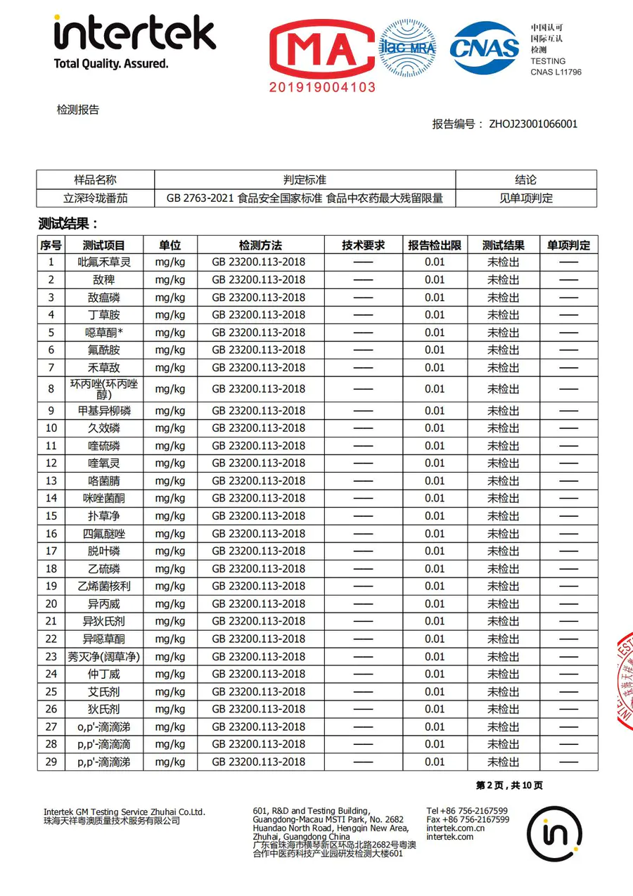 番茄检测报告2023年1月