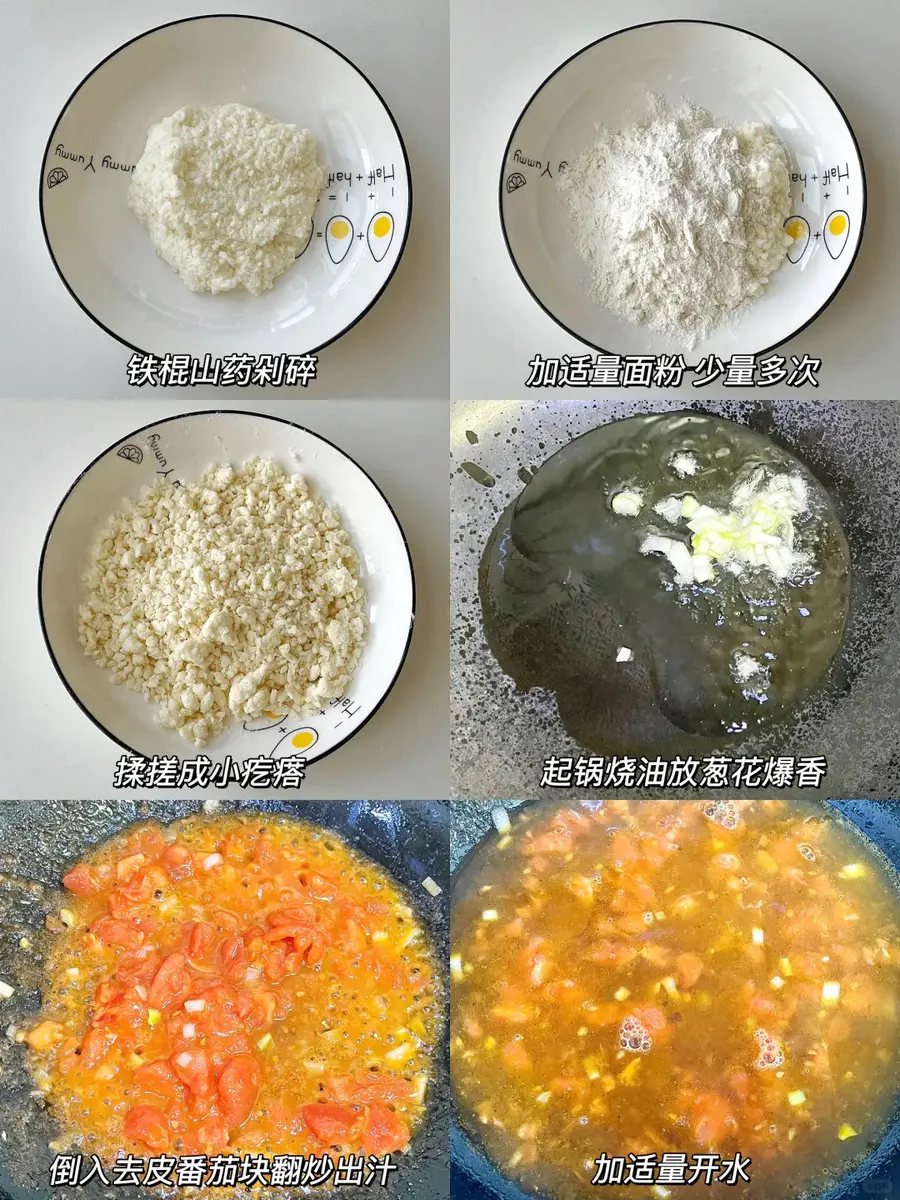 1️⃣山药剁碎,加入适量面粉,遵循少量多次,揉搓成小疙瘩
