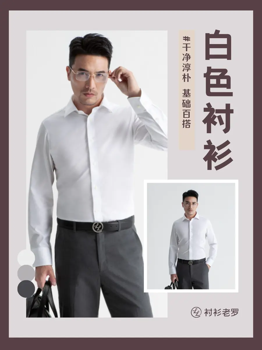 纯白色衬衫和浅蓝色衬衫是职场穿搭的主流。