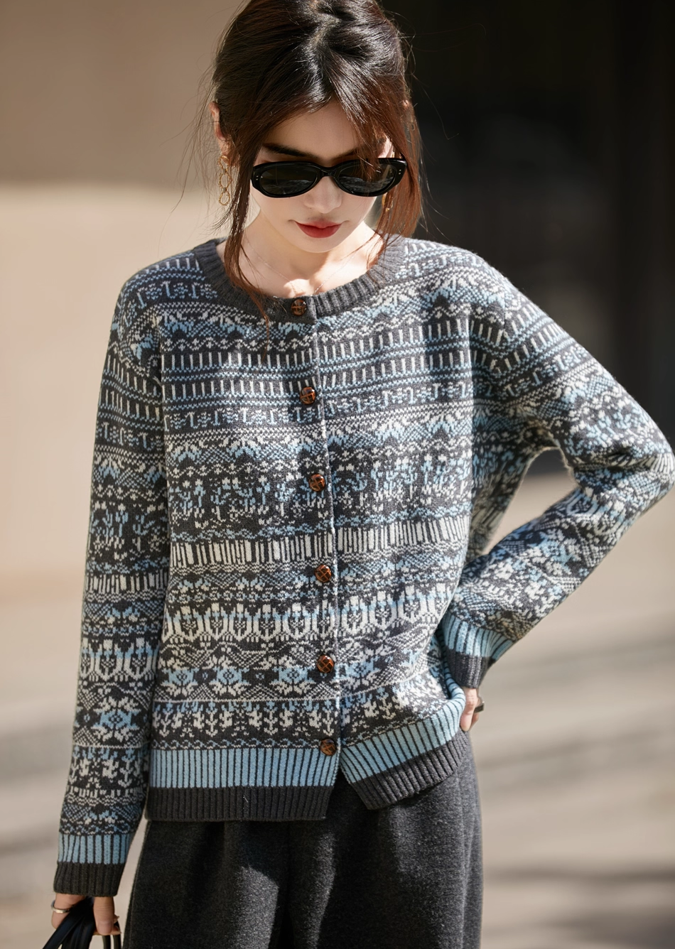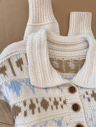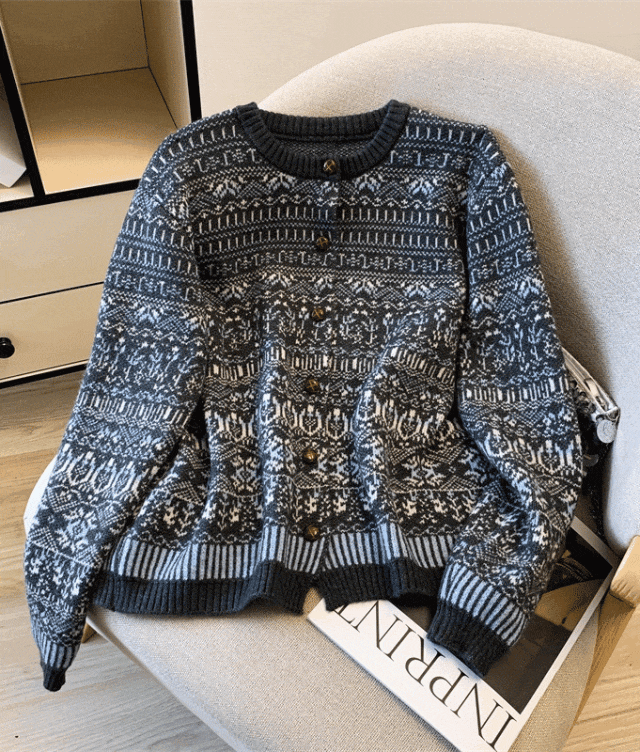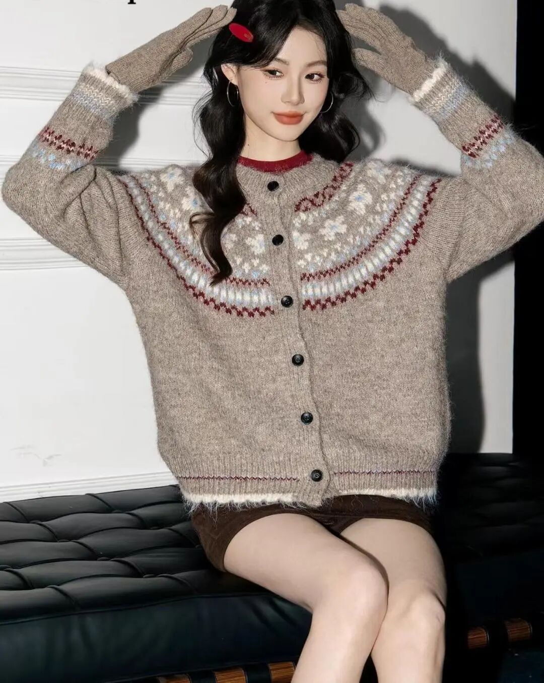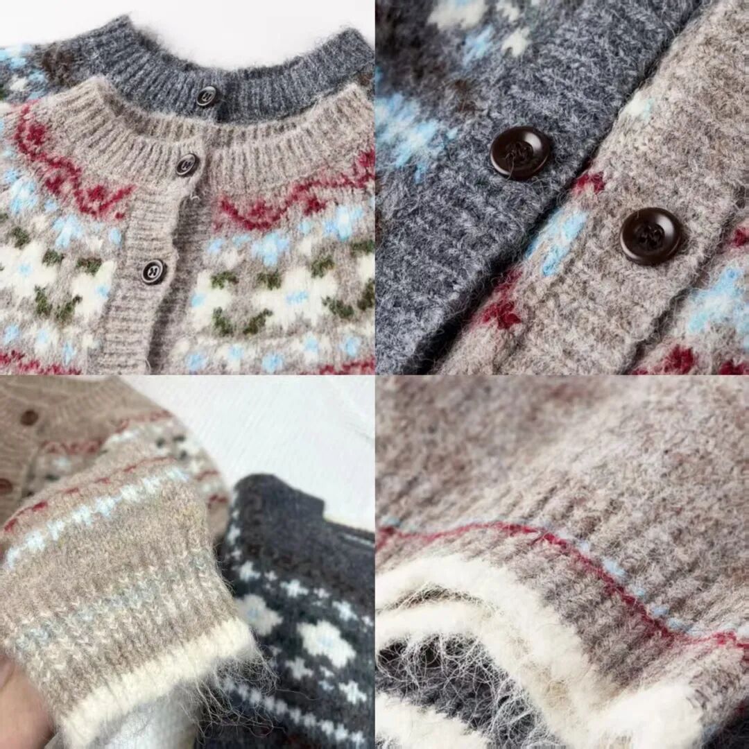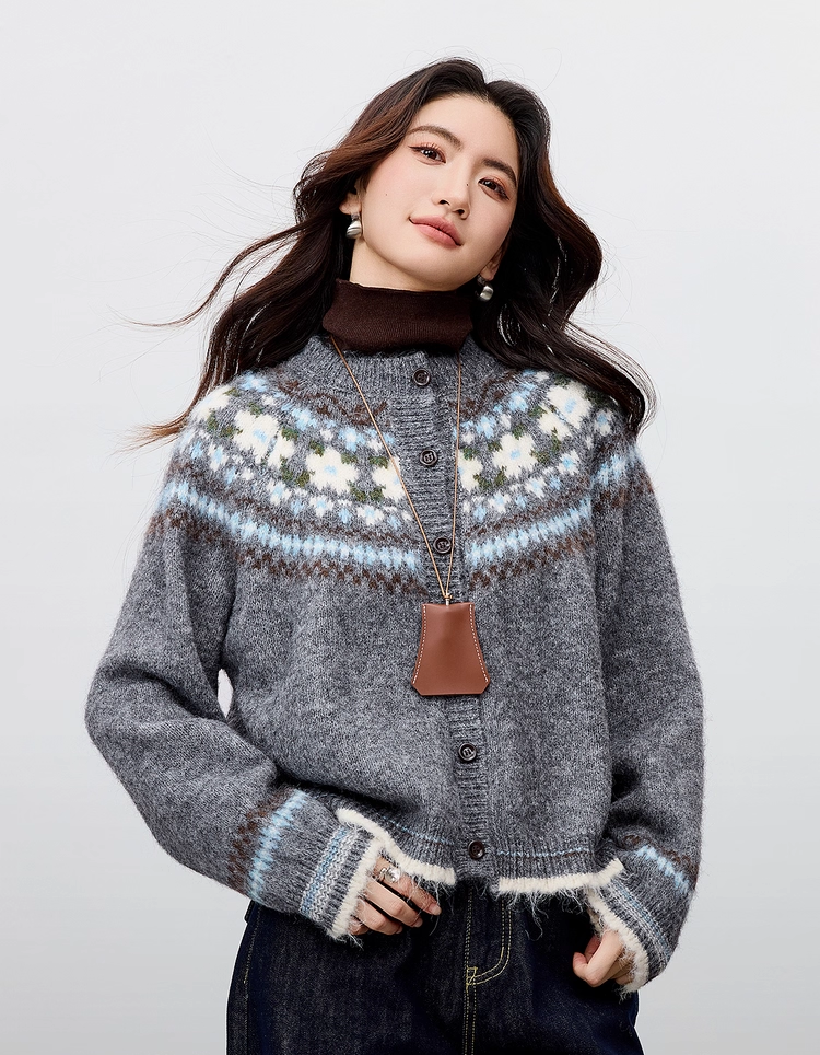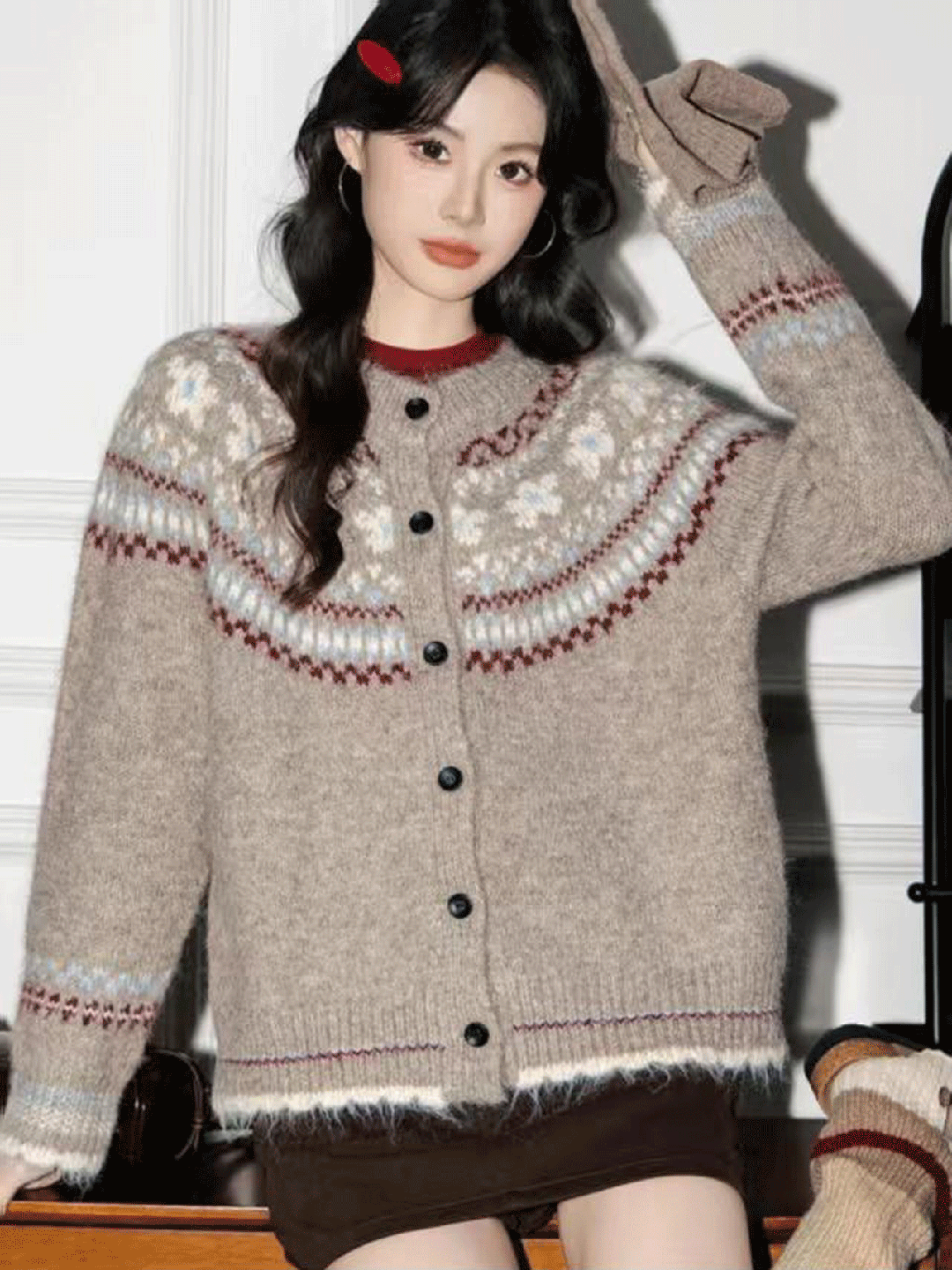 ①费尔岛茉莉复古花色毛衣开衫N1312